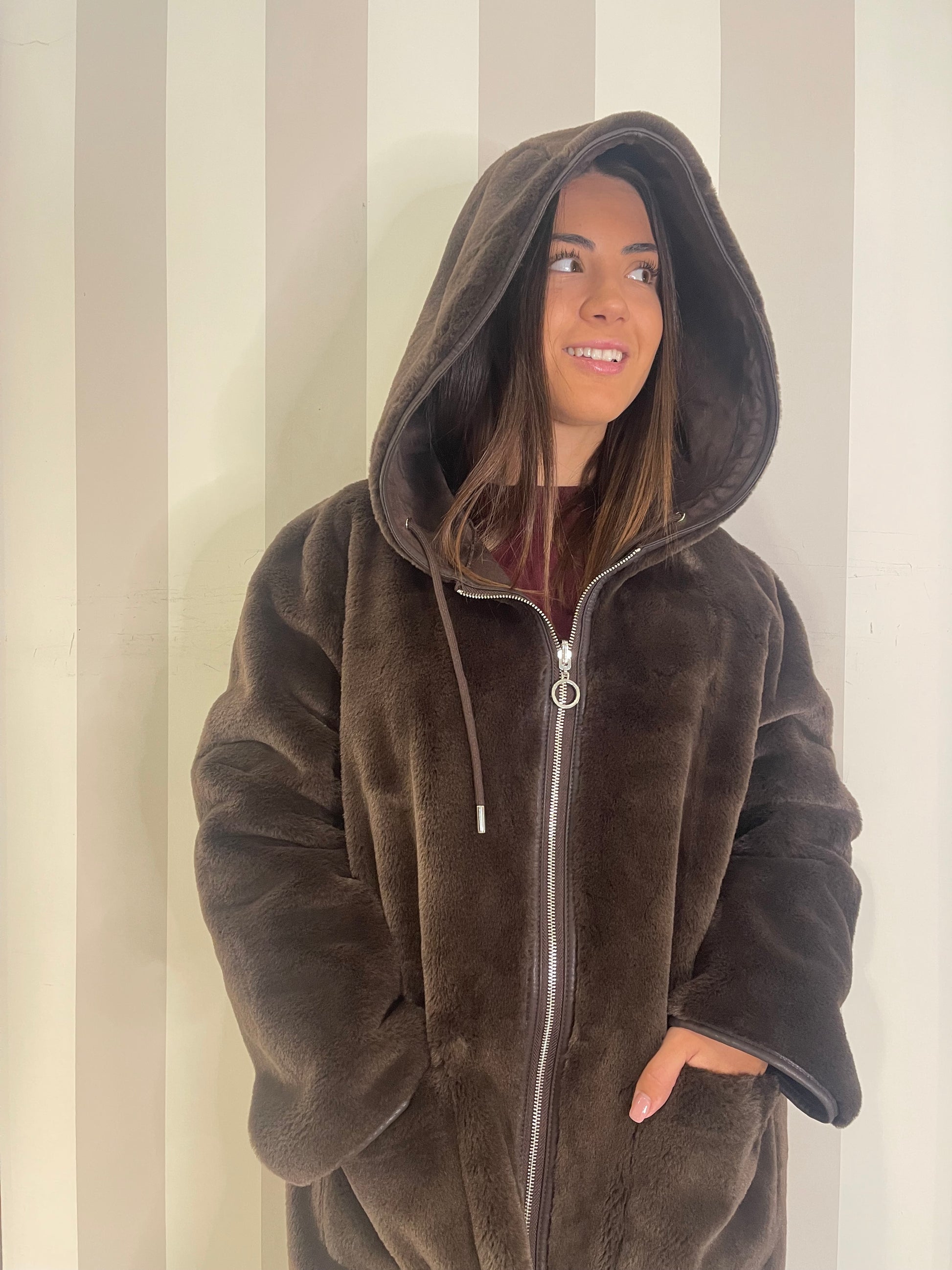 Giacca Eco montone reversibile Eco pelliccia con cappuccio Azulè