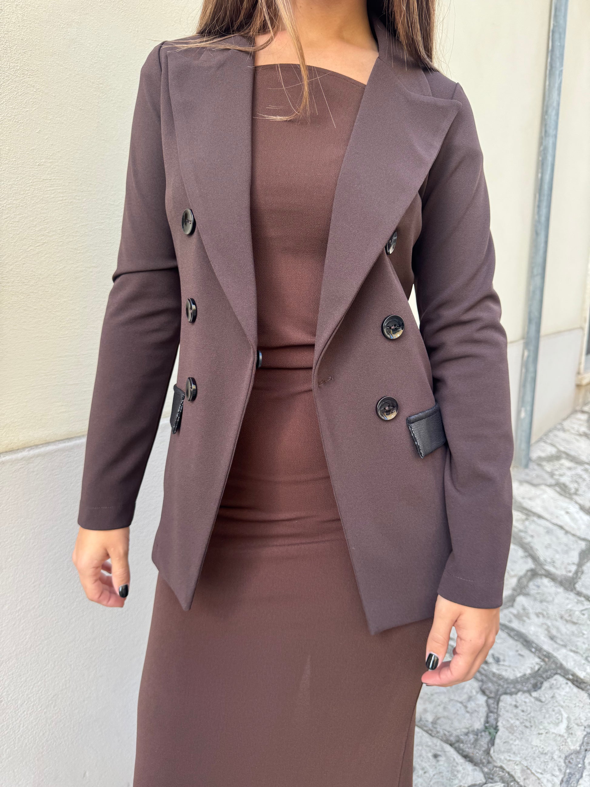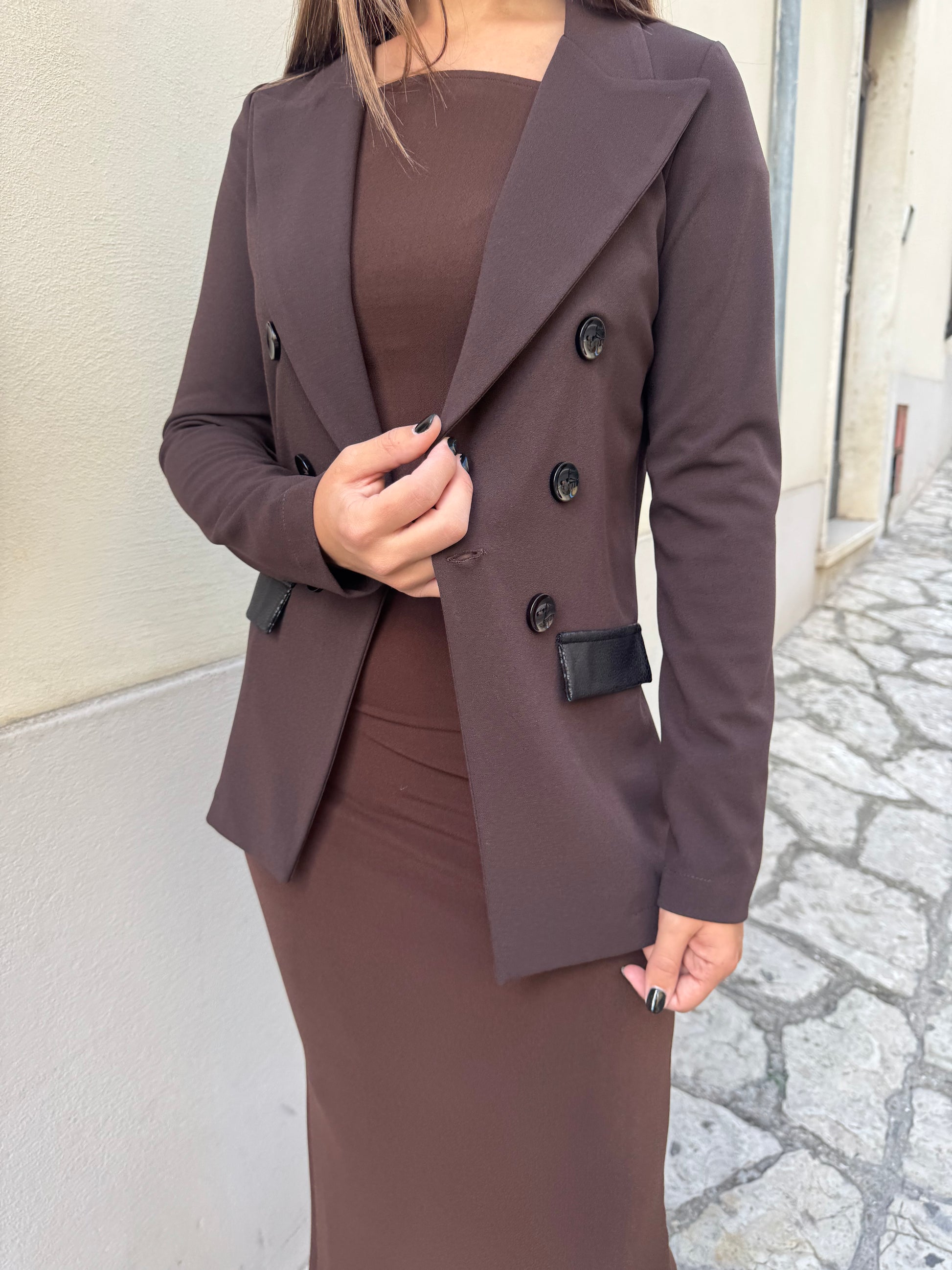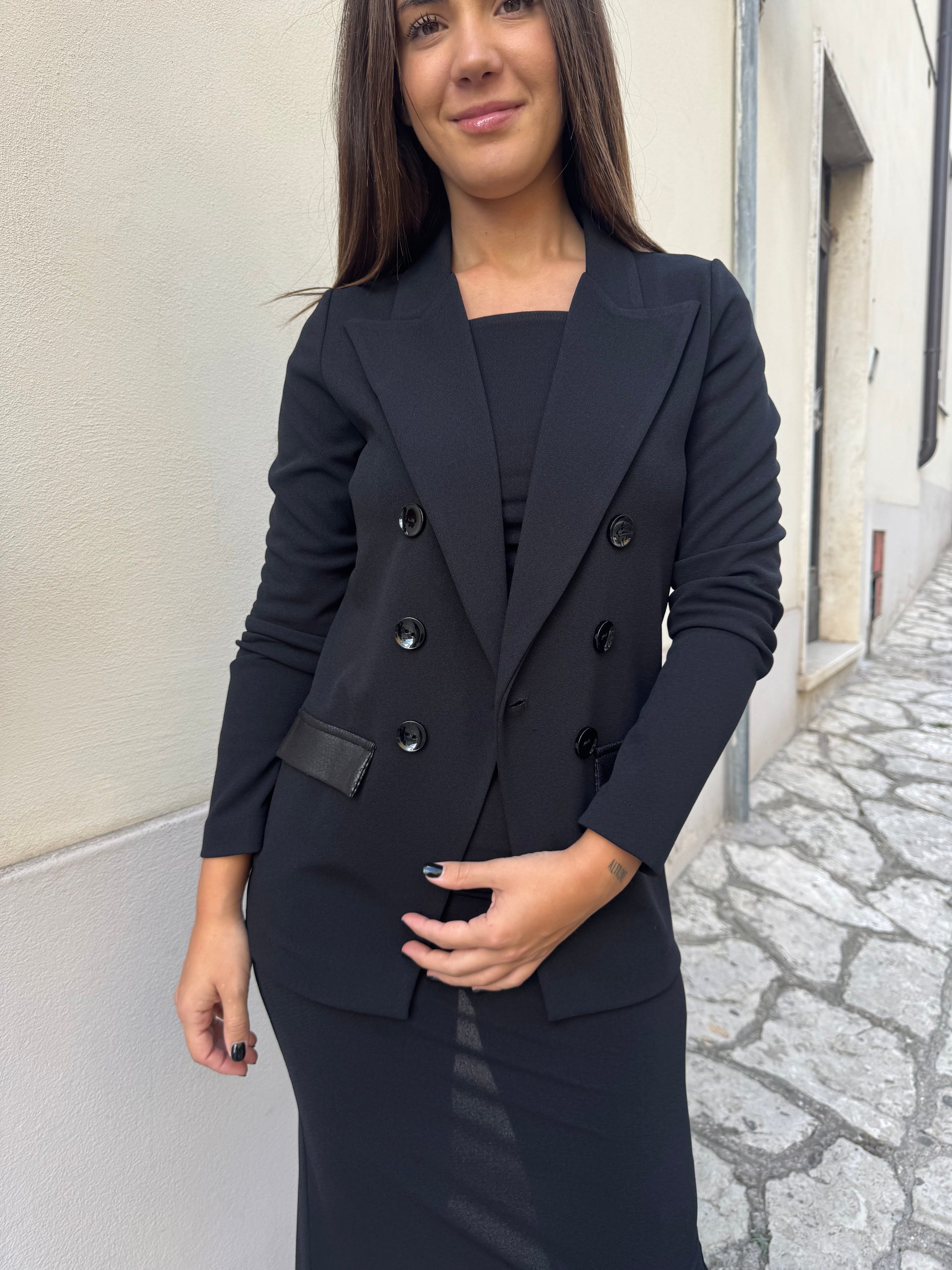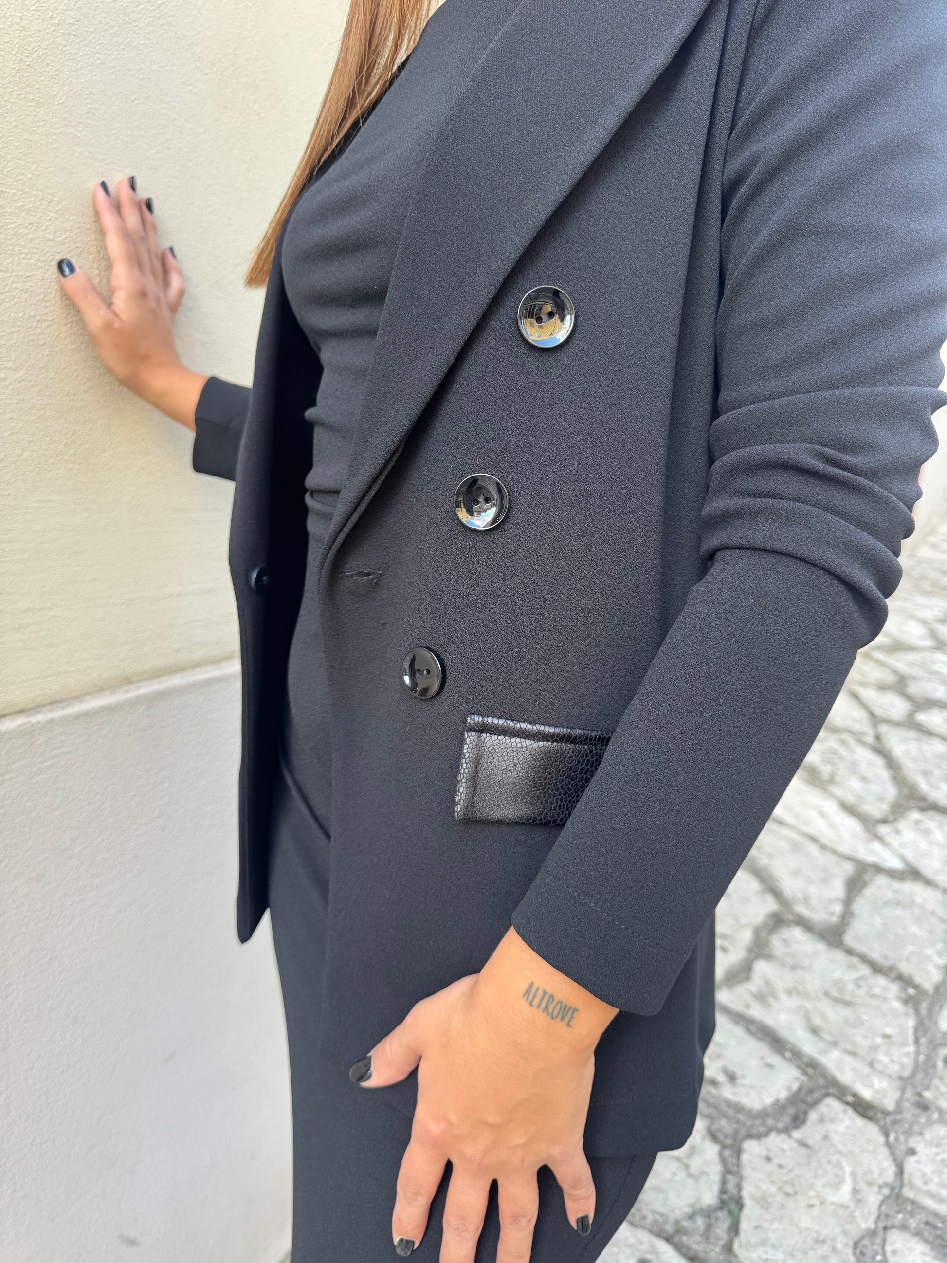 Descrizione: Giacca destrutturata Artigli, con inserti sulle tasche in ecopelle, chiusura 1 bottone
