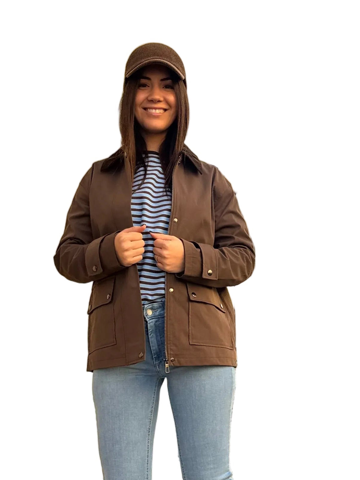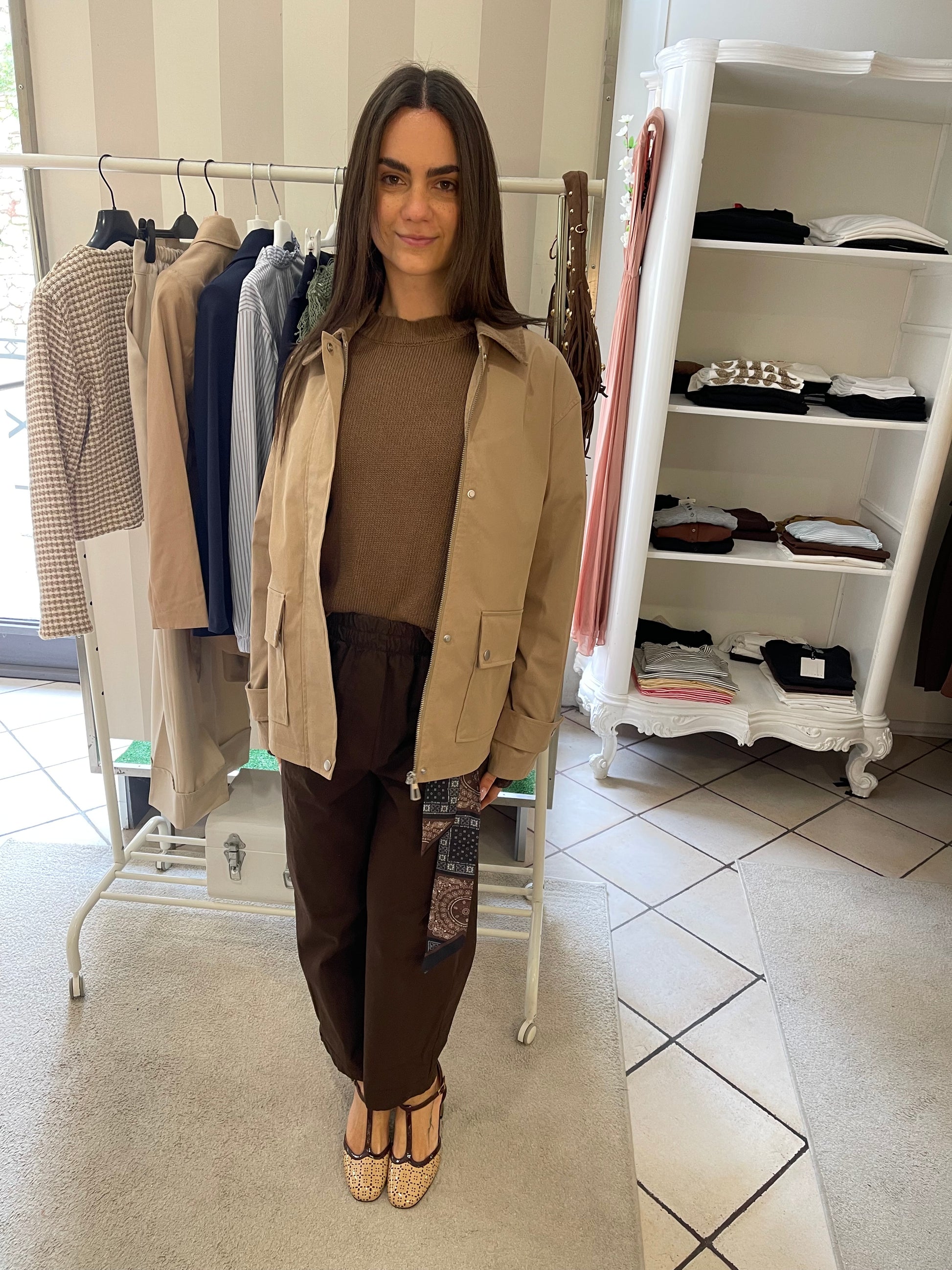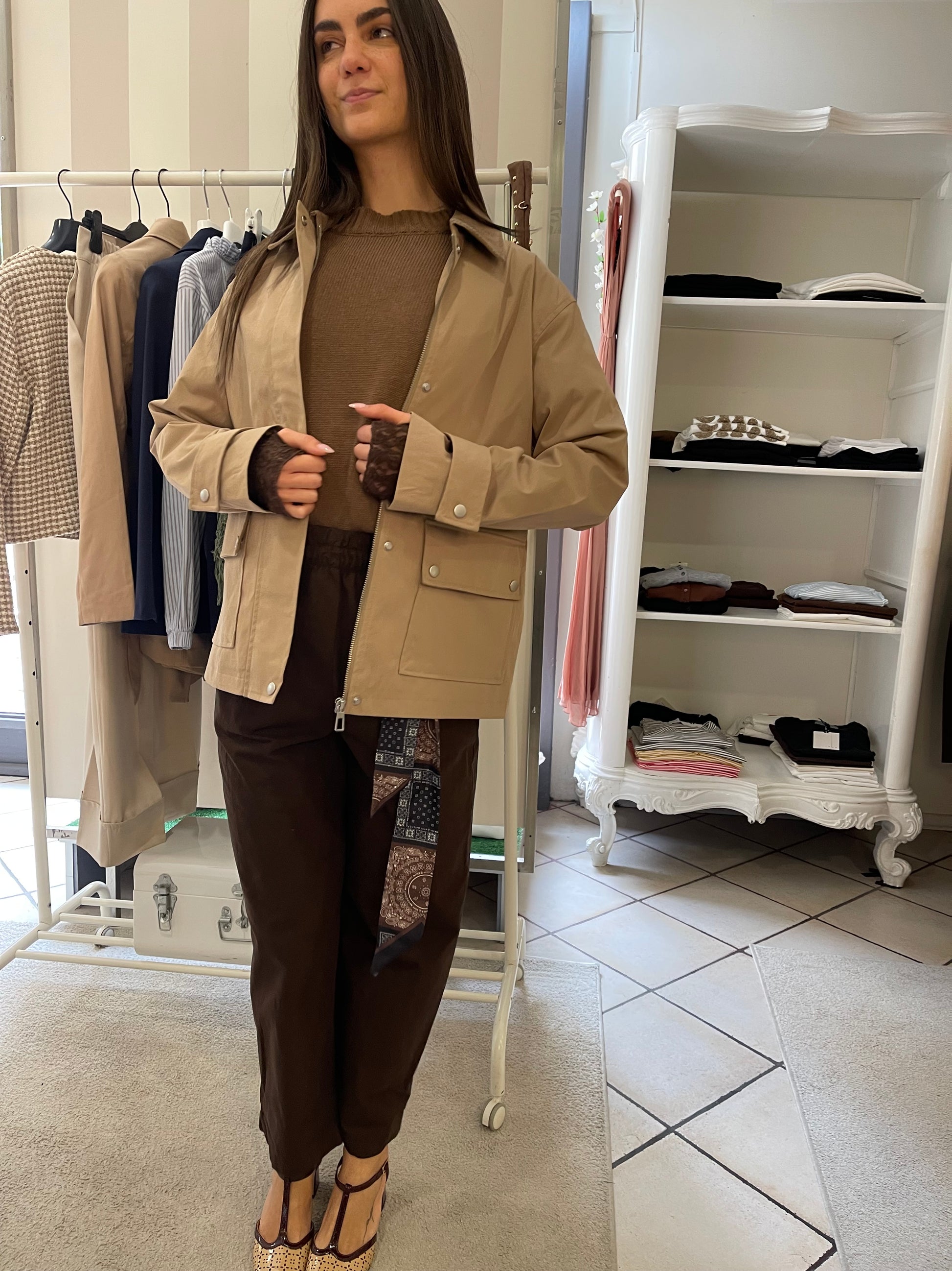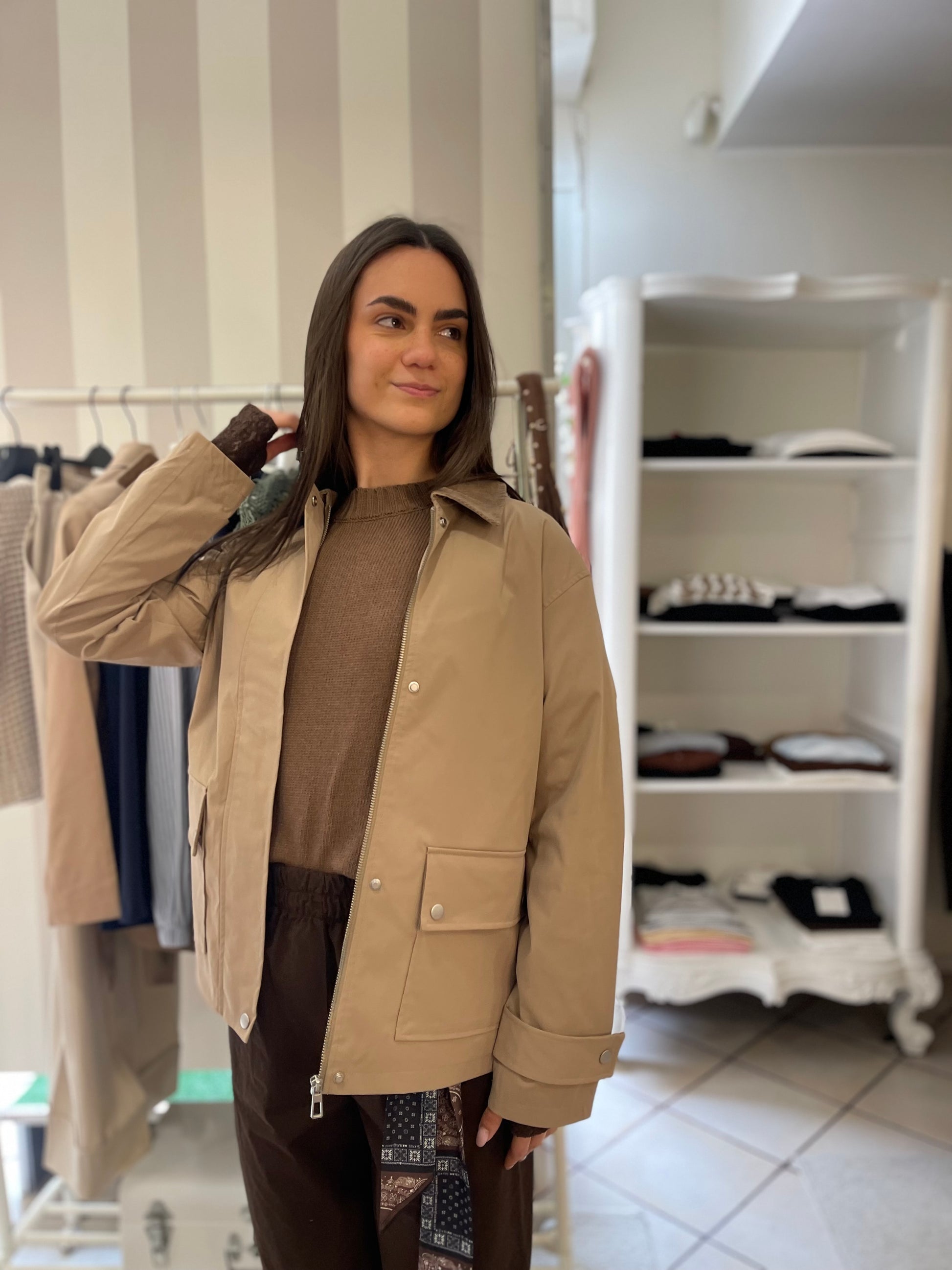 Descrizione: Giacca mezza stagione ,foderata interamente,con tasconi,chiusura zip e bottoni,dettaglio sulla manica,colletto velluto mille righe