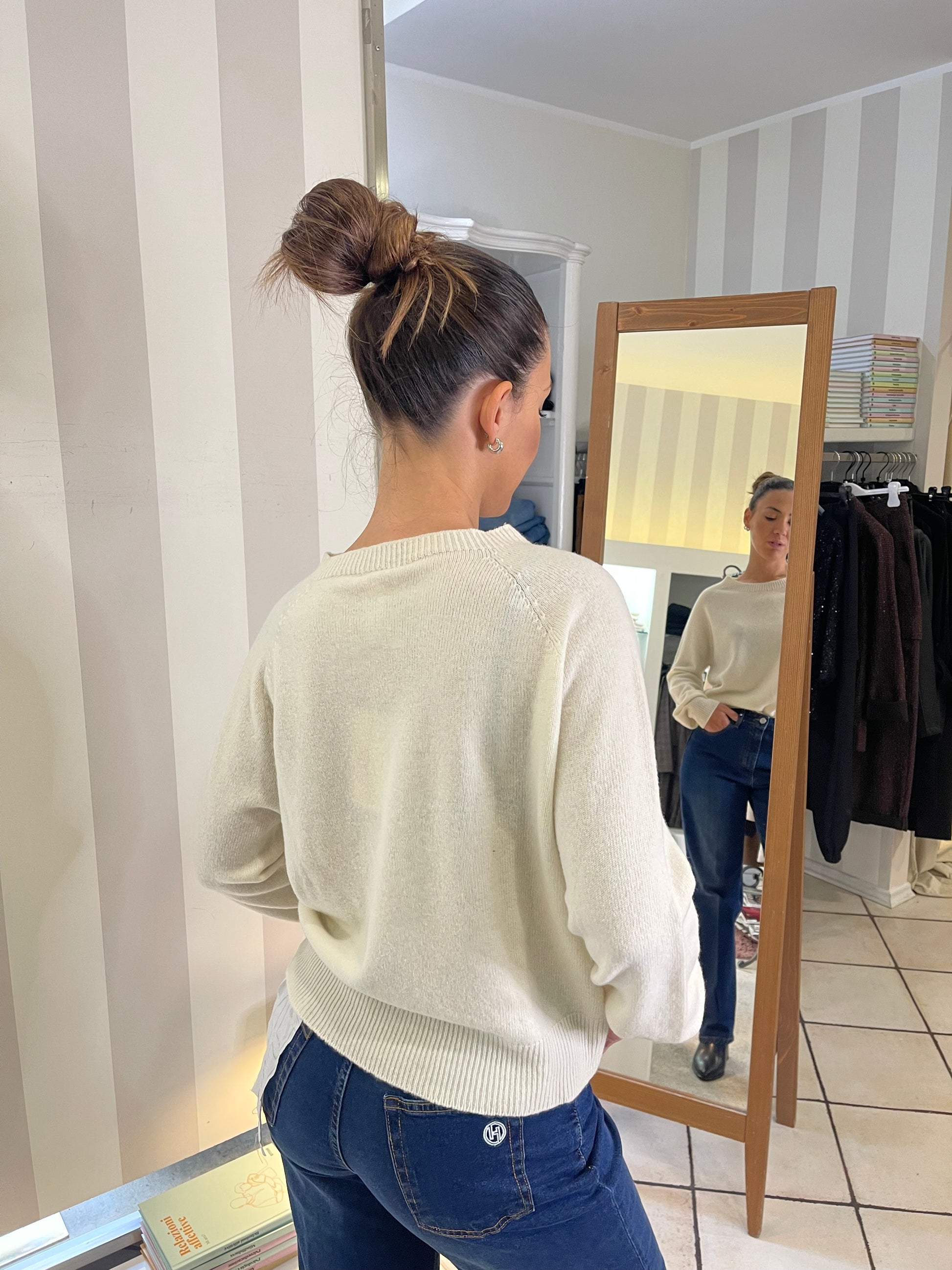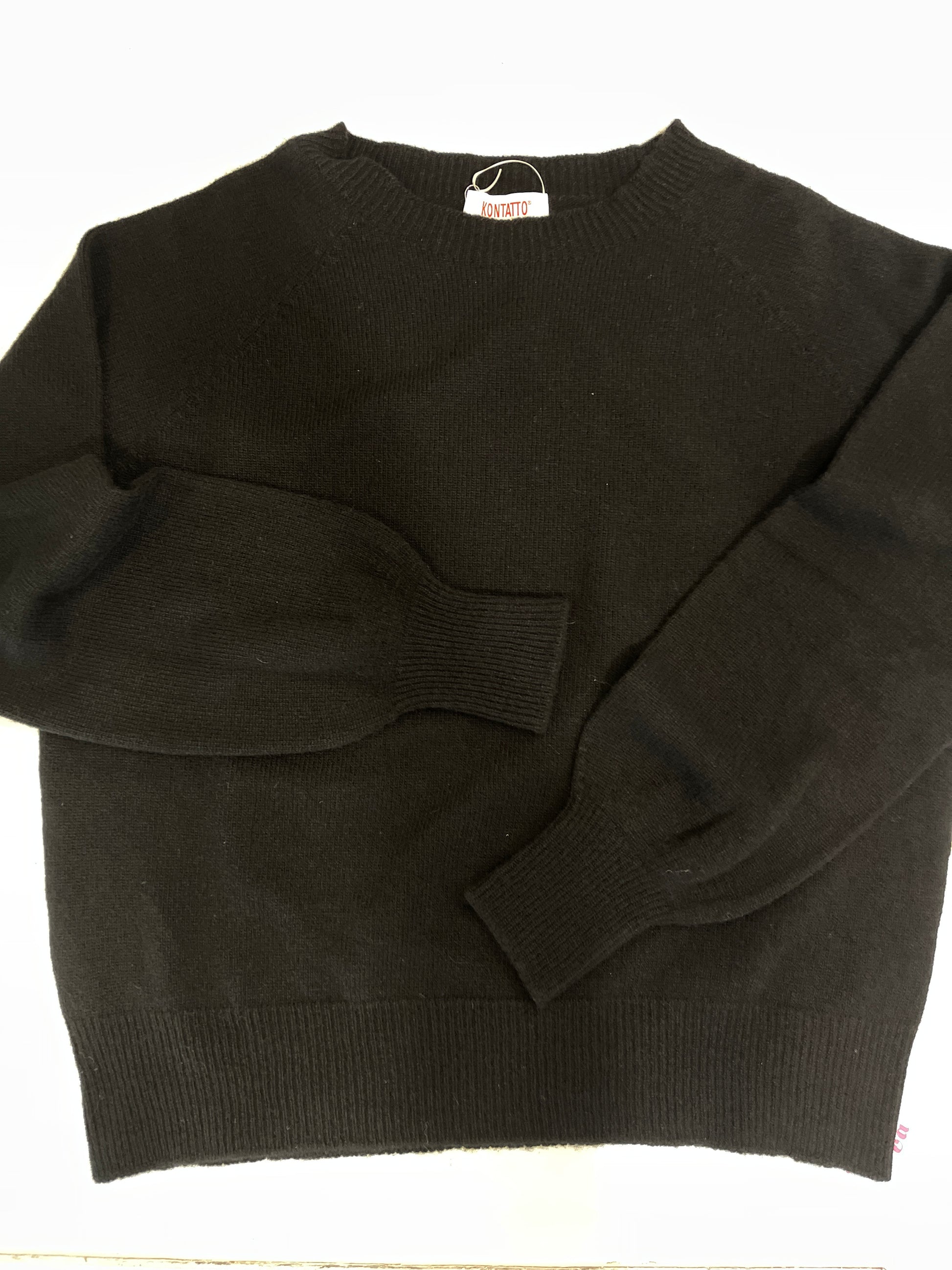 Descrizione: Maglia in lana Kontatto,girocollo, con polsini e cannolette finale