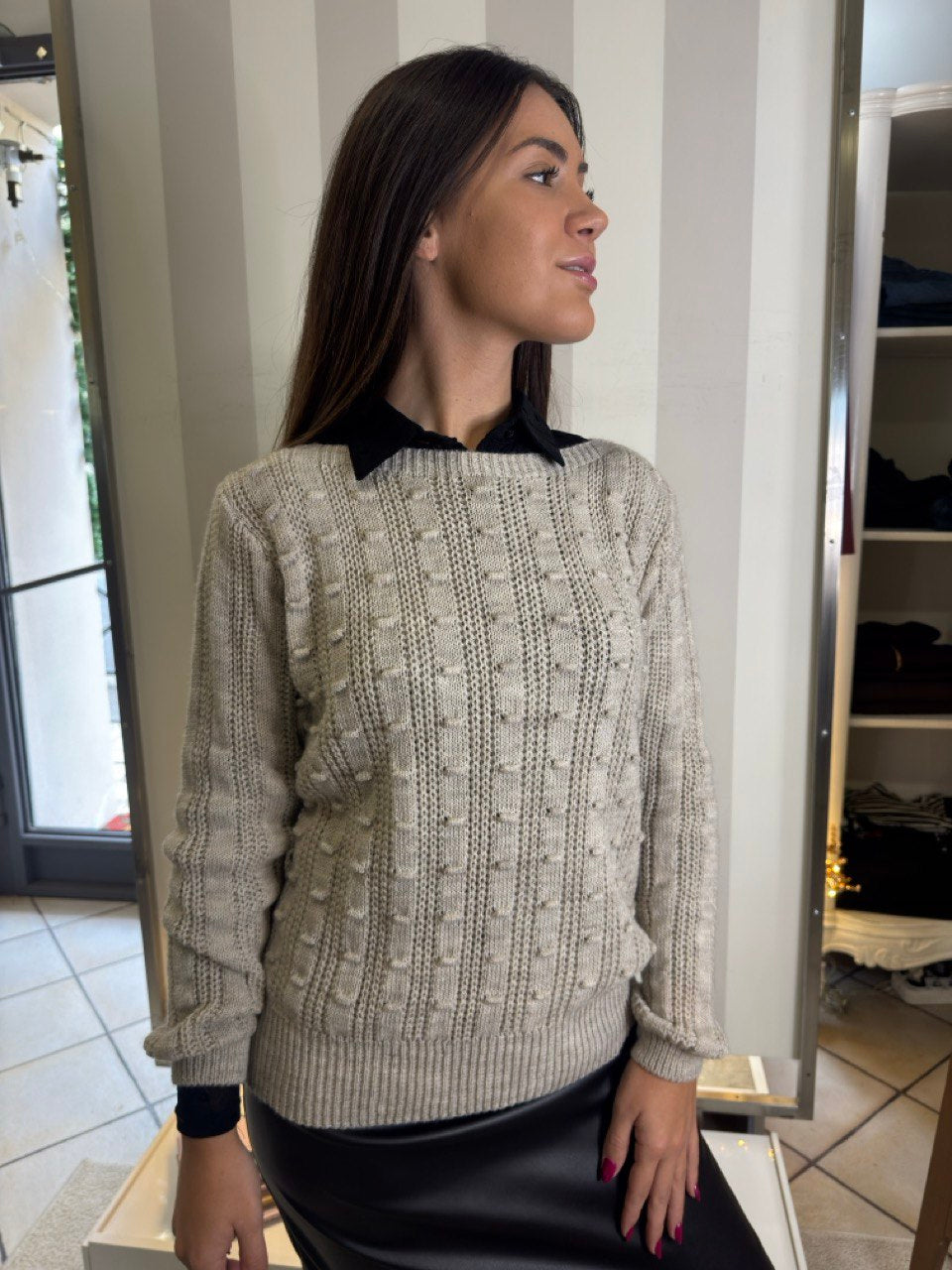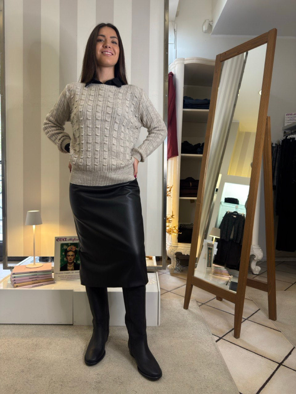 Descrizione: Maglia con dettagli e lavorazione traforata, scollo a barca,taglio dritto