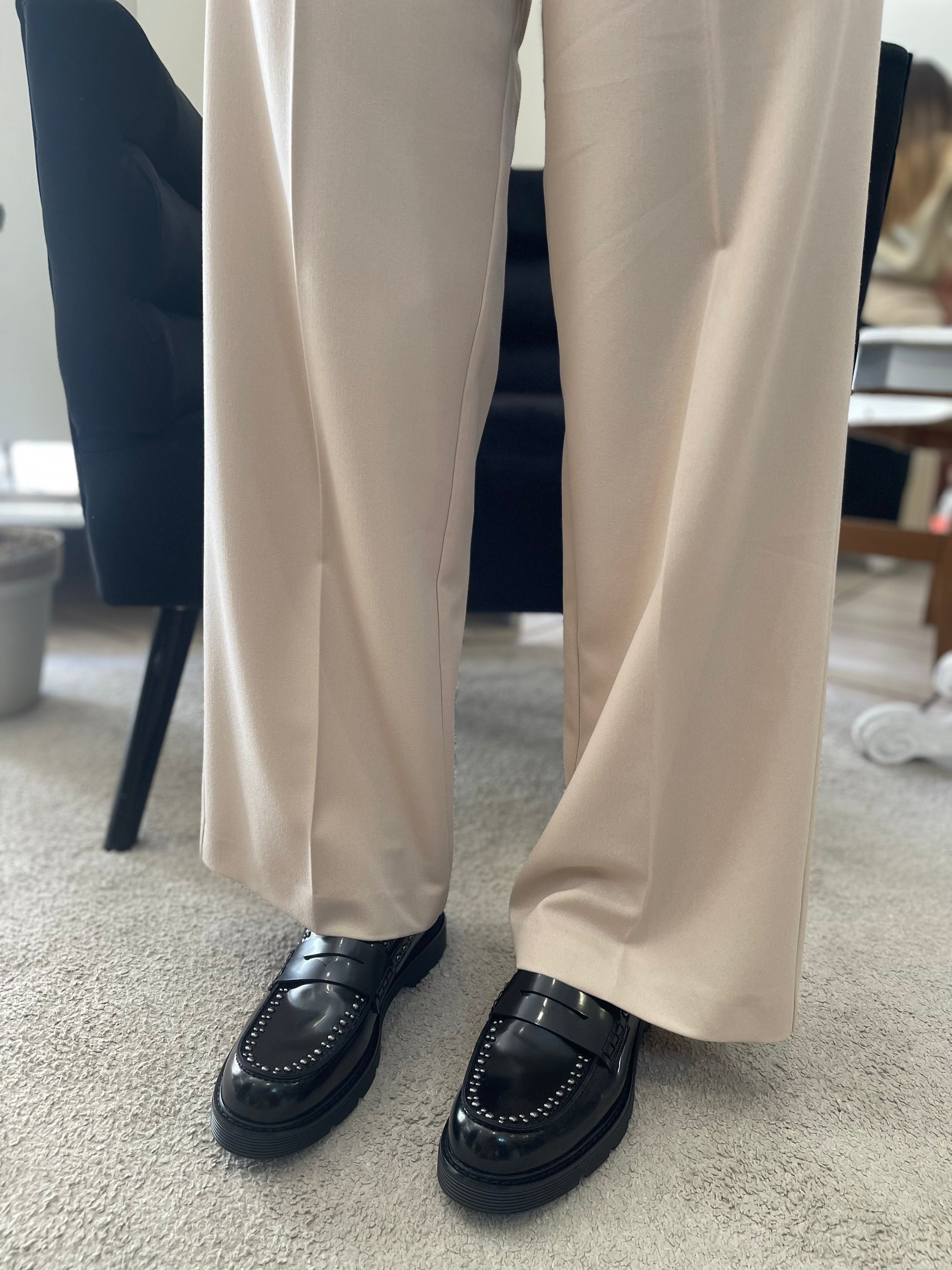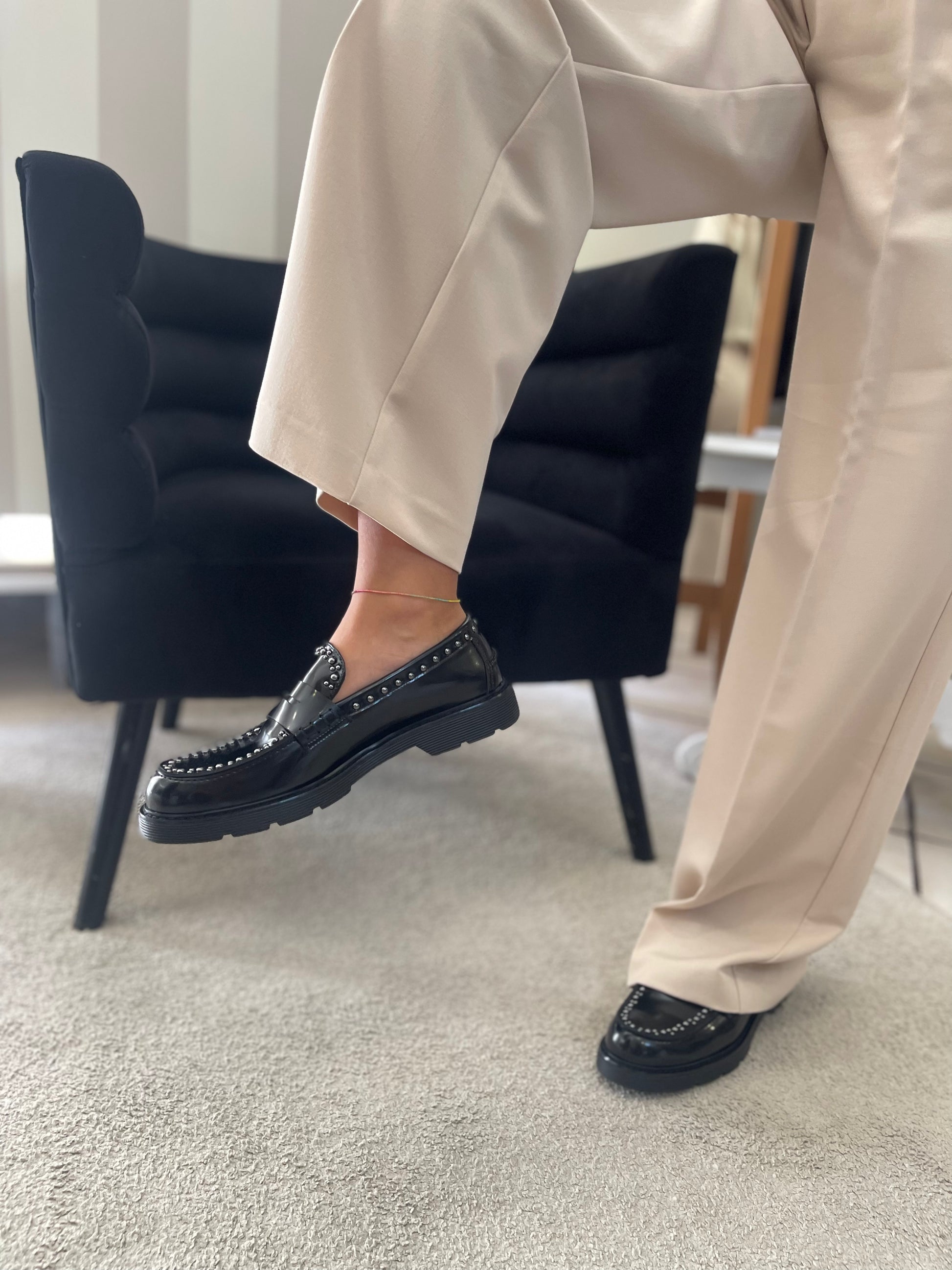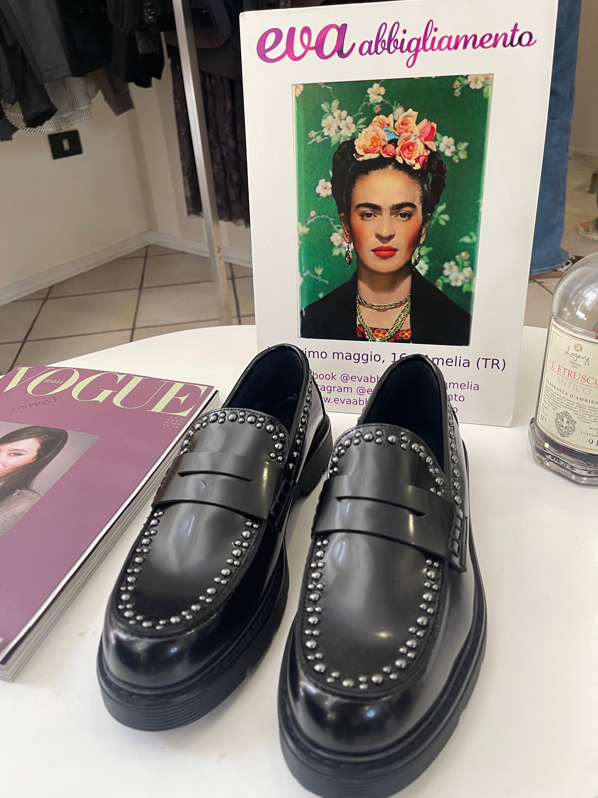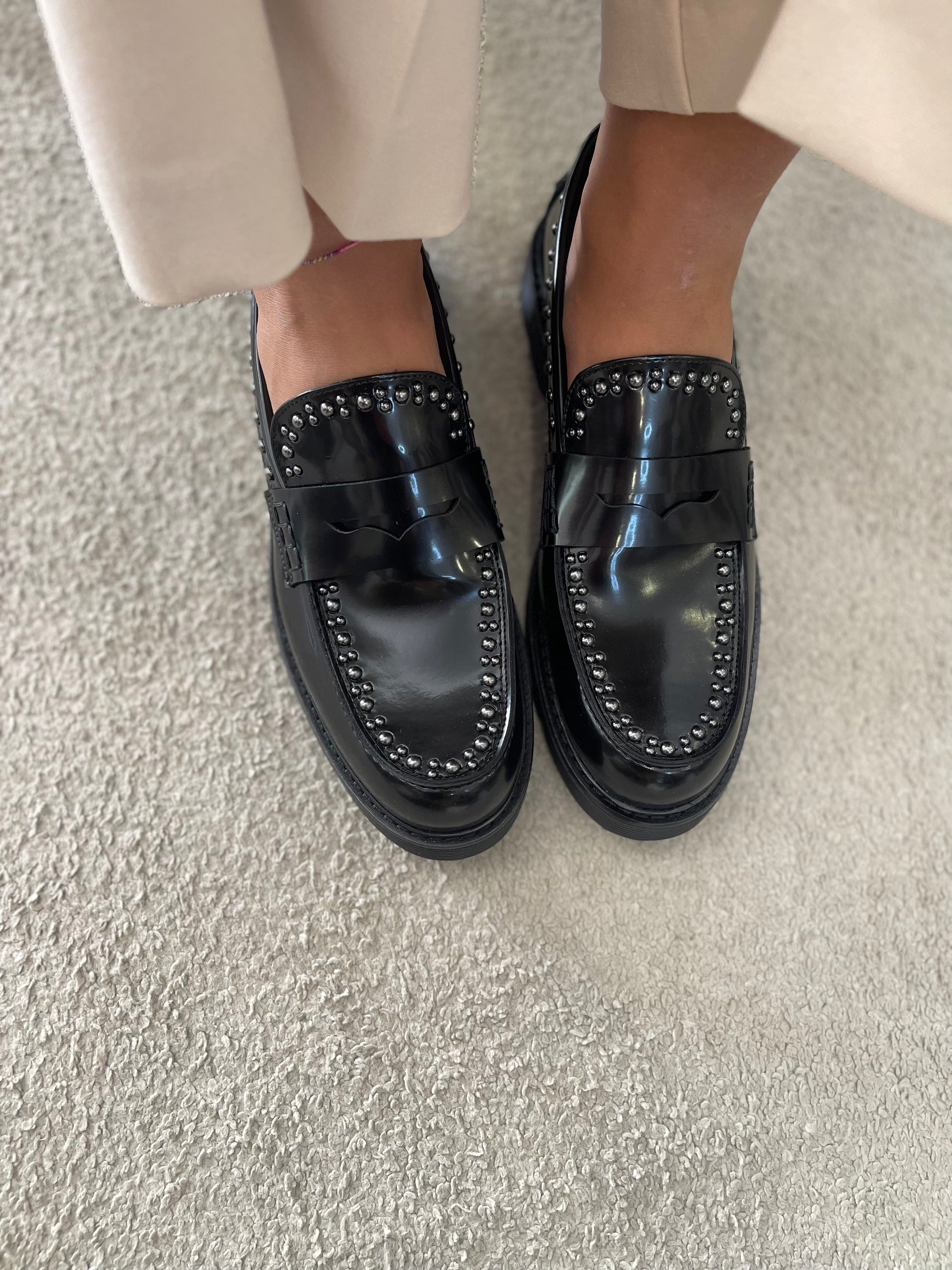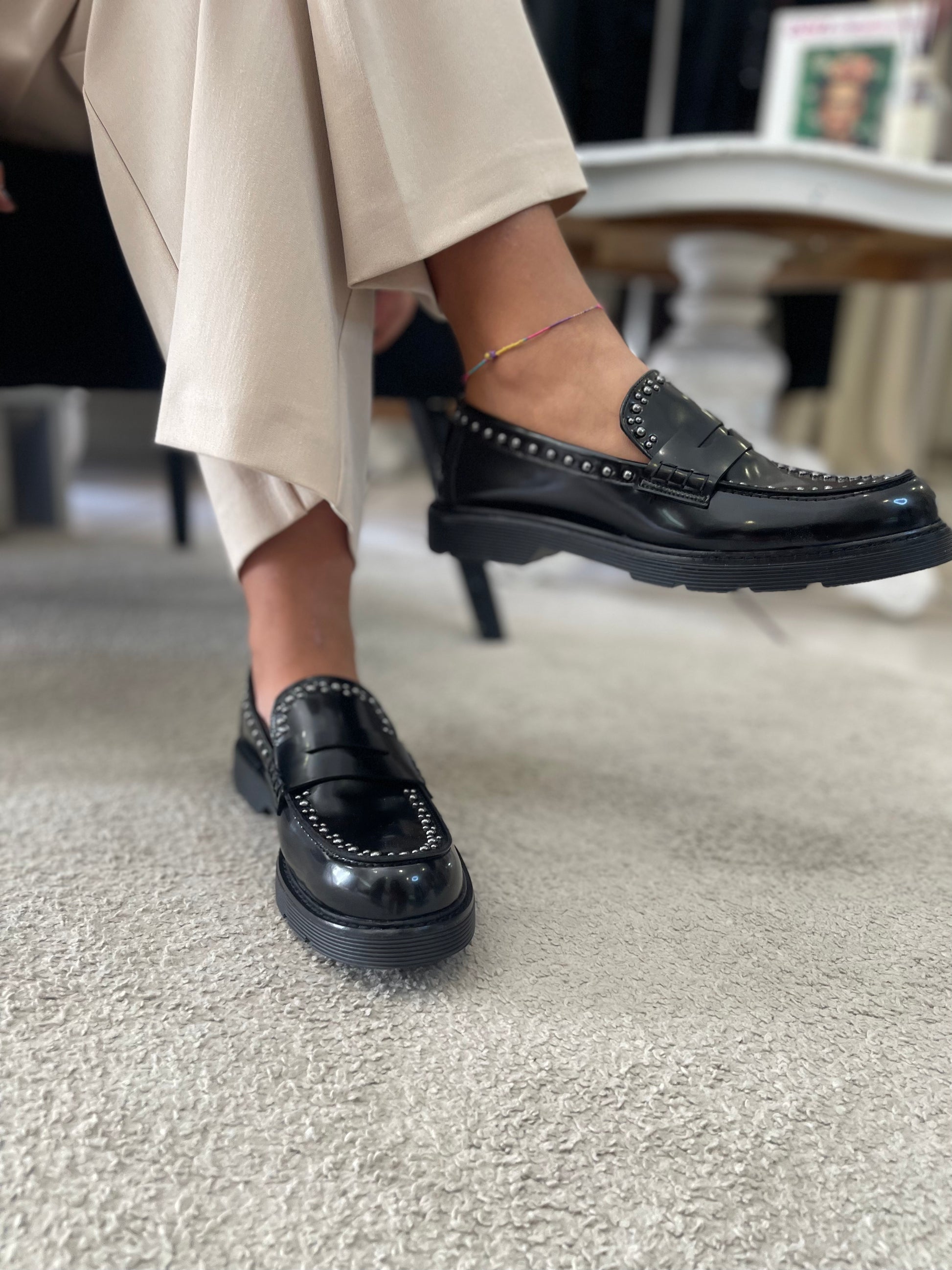Descrizione: Mocassino in pelle con piccoli dettagli colore acciaio. Made in Italy