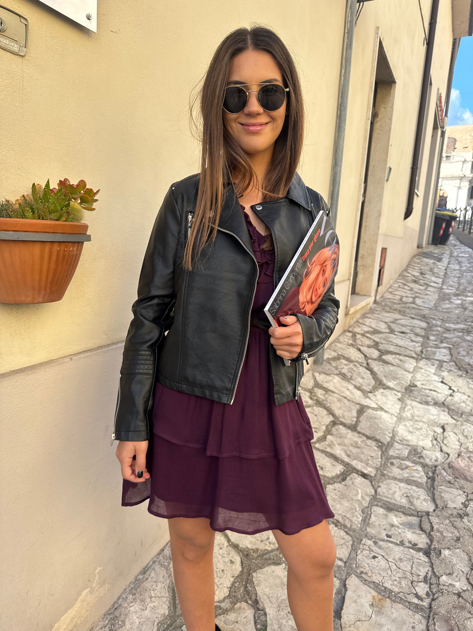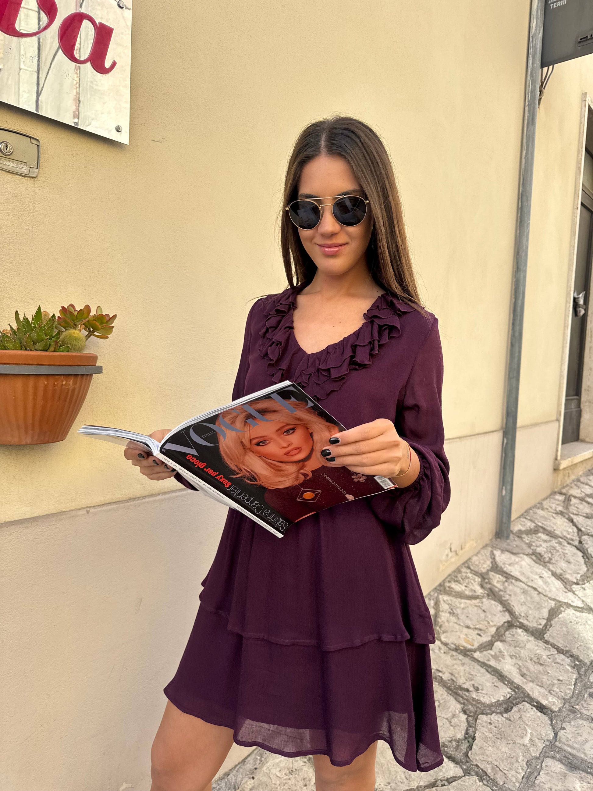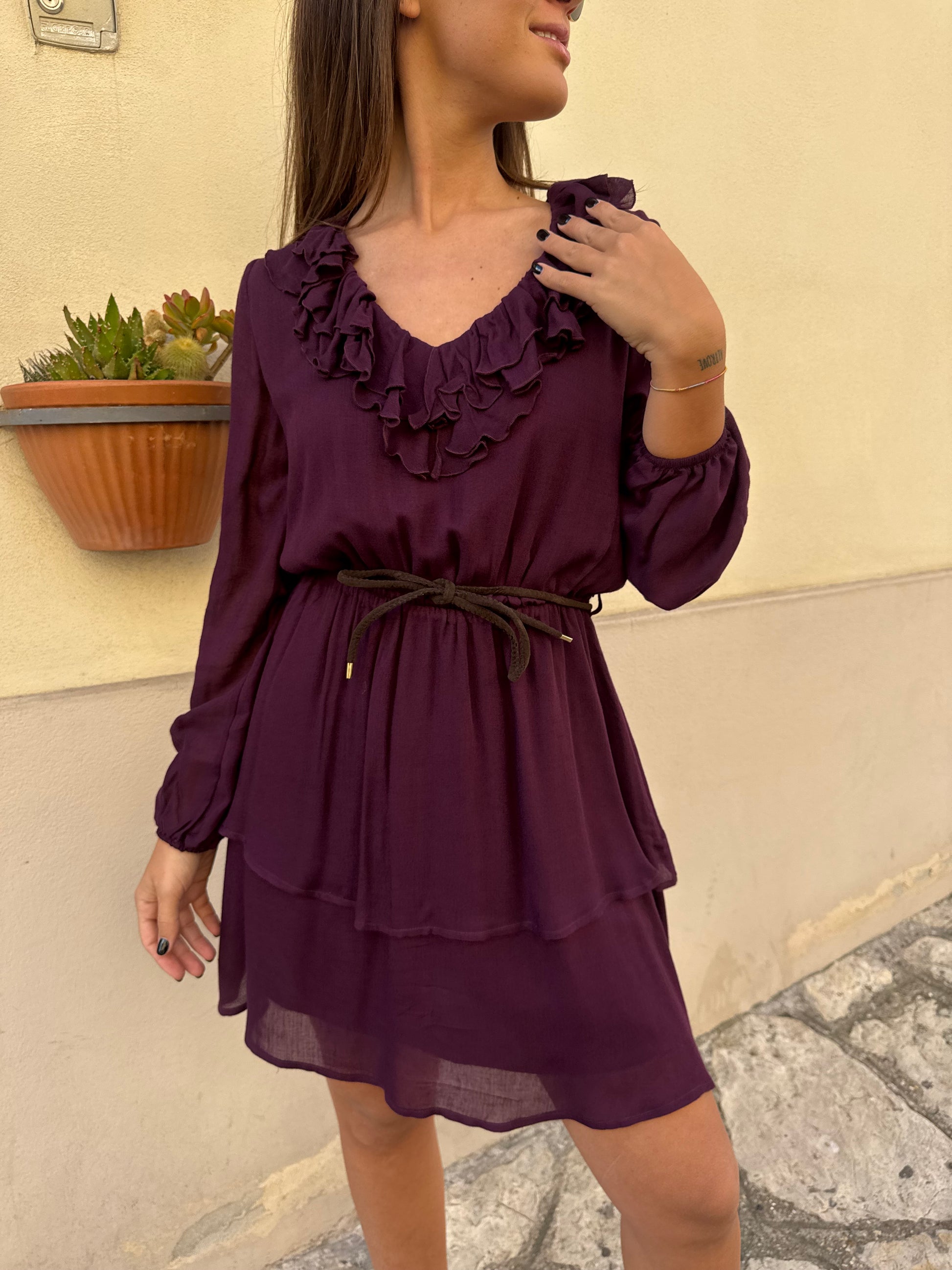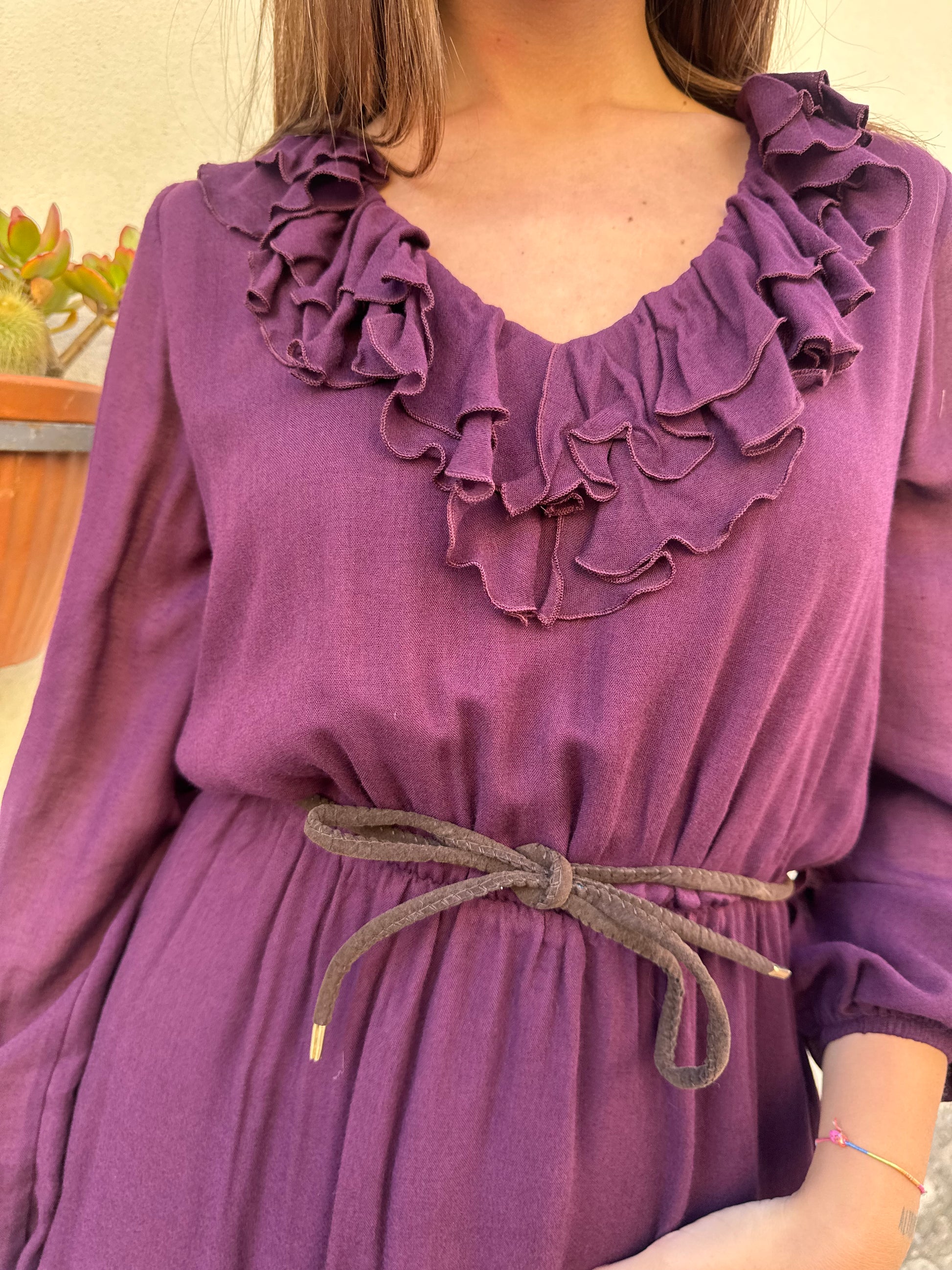 Descrizione: Abito con volant sul davanti , balza e cinturina con passanti in vita,manica lunga