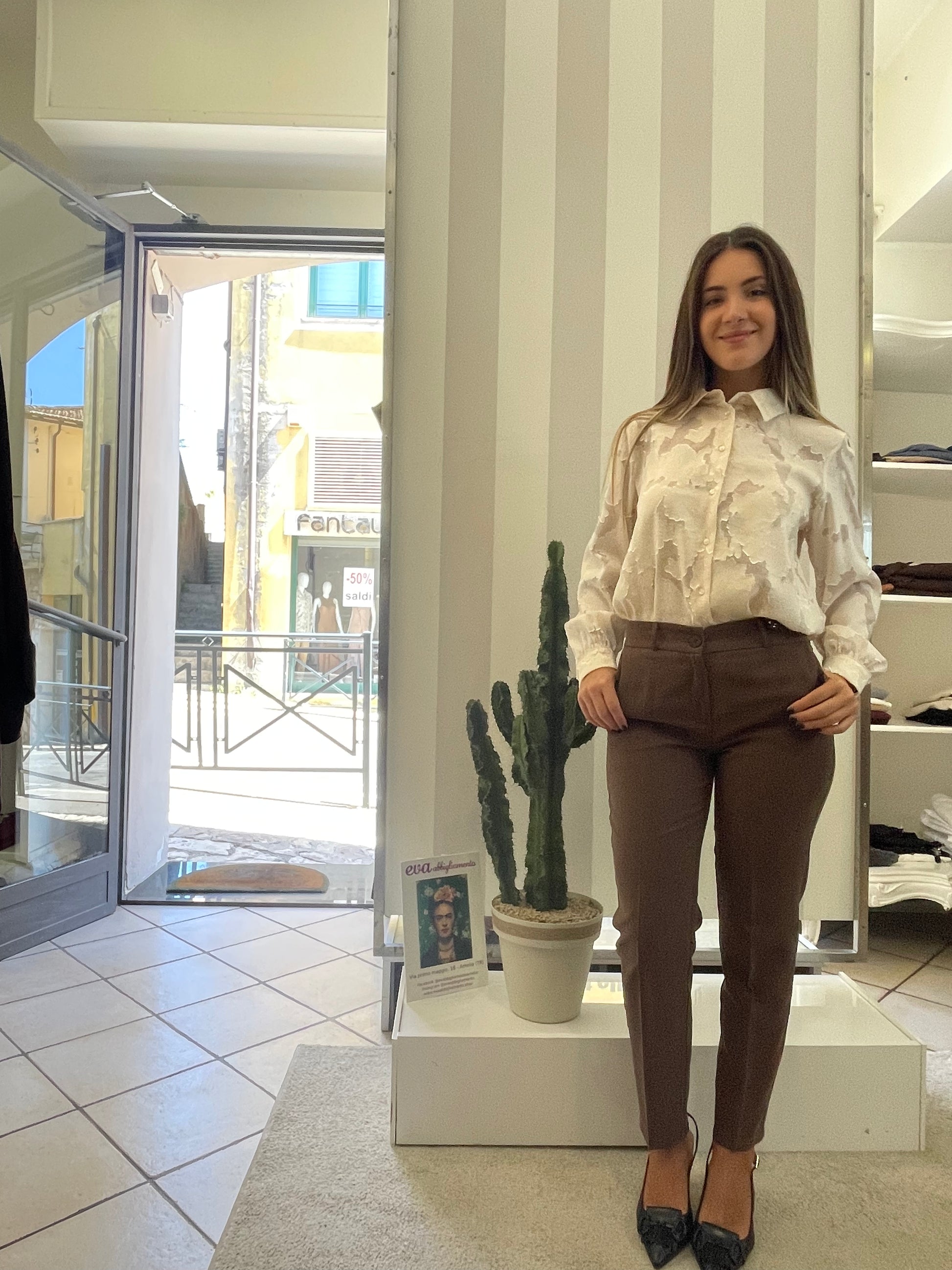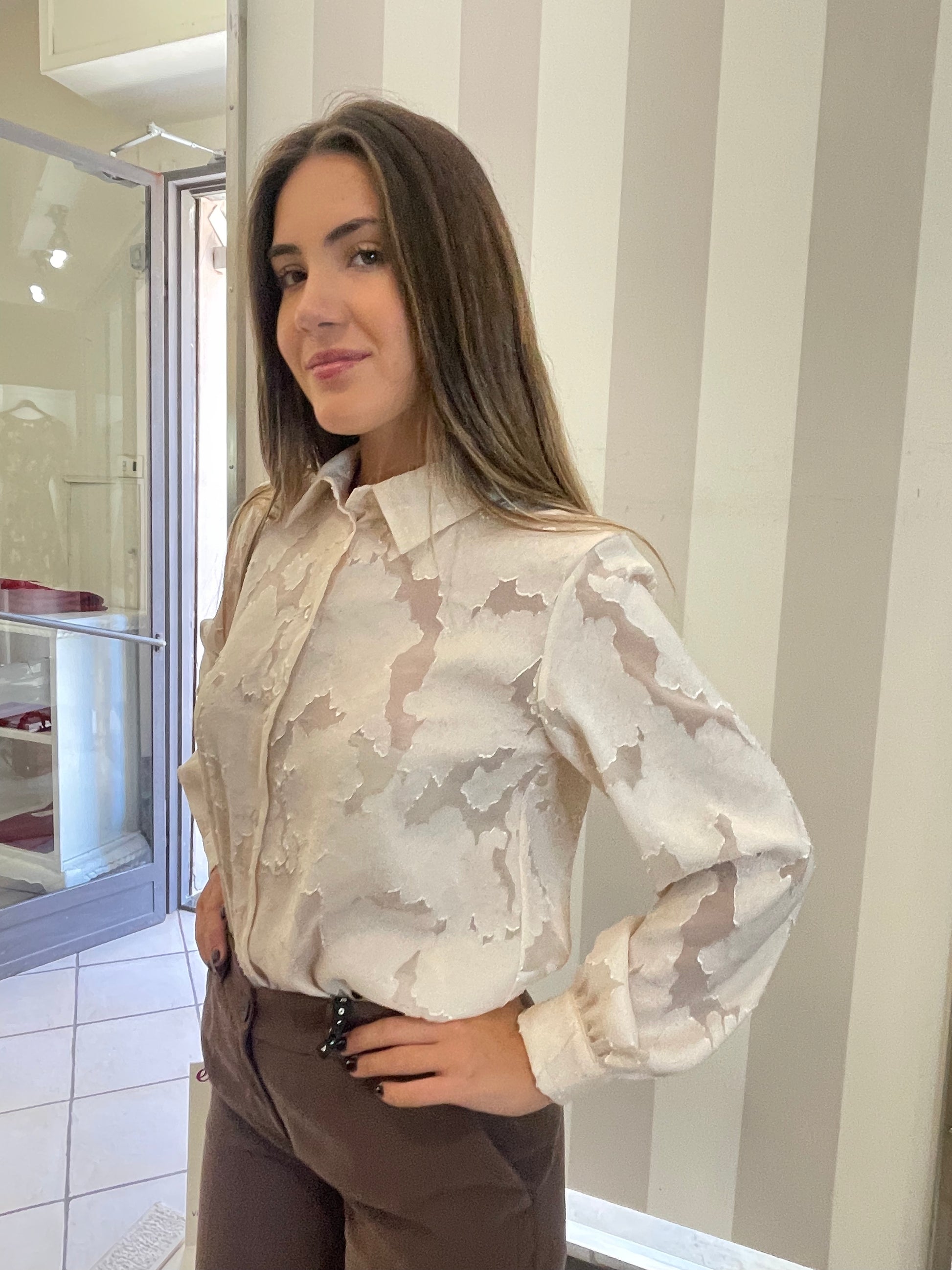 Descrizione: Camicia manica lunga con bottoni e colletto, effetto ricamo, colore burro.