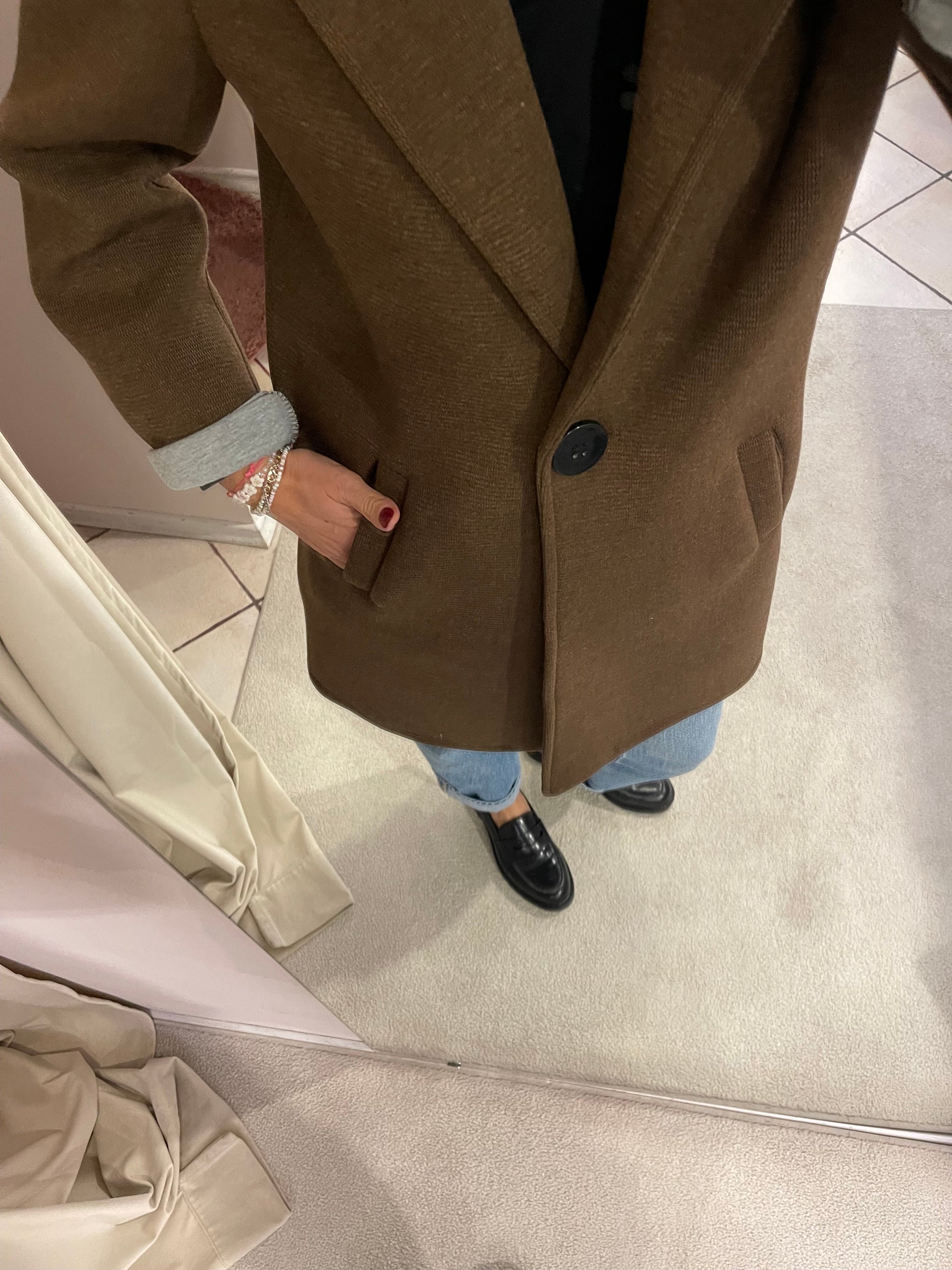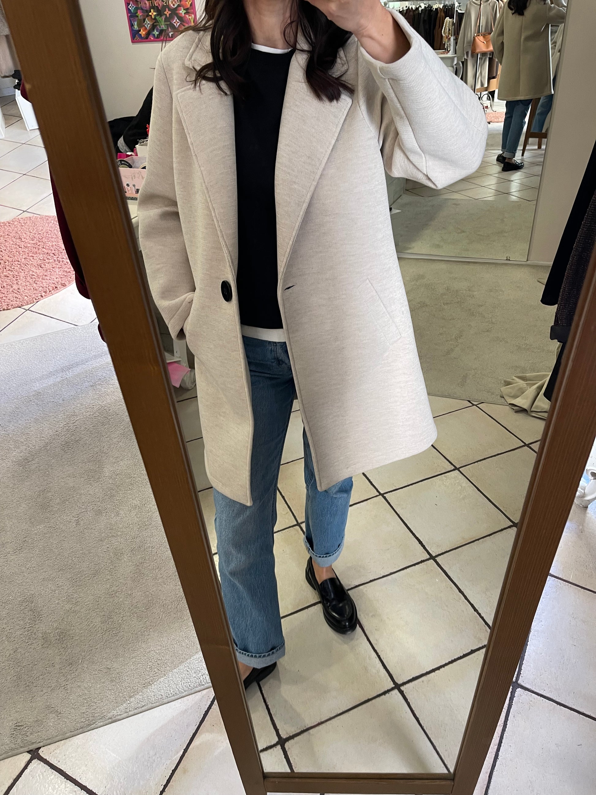 Descrizione: Cappottino in neoprene,con chiusura 1 bottone,due tasche.