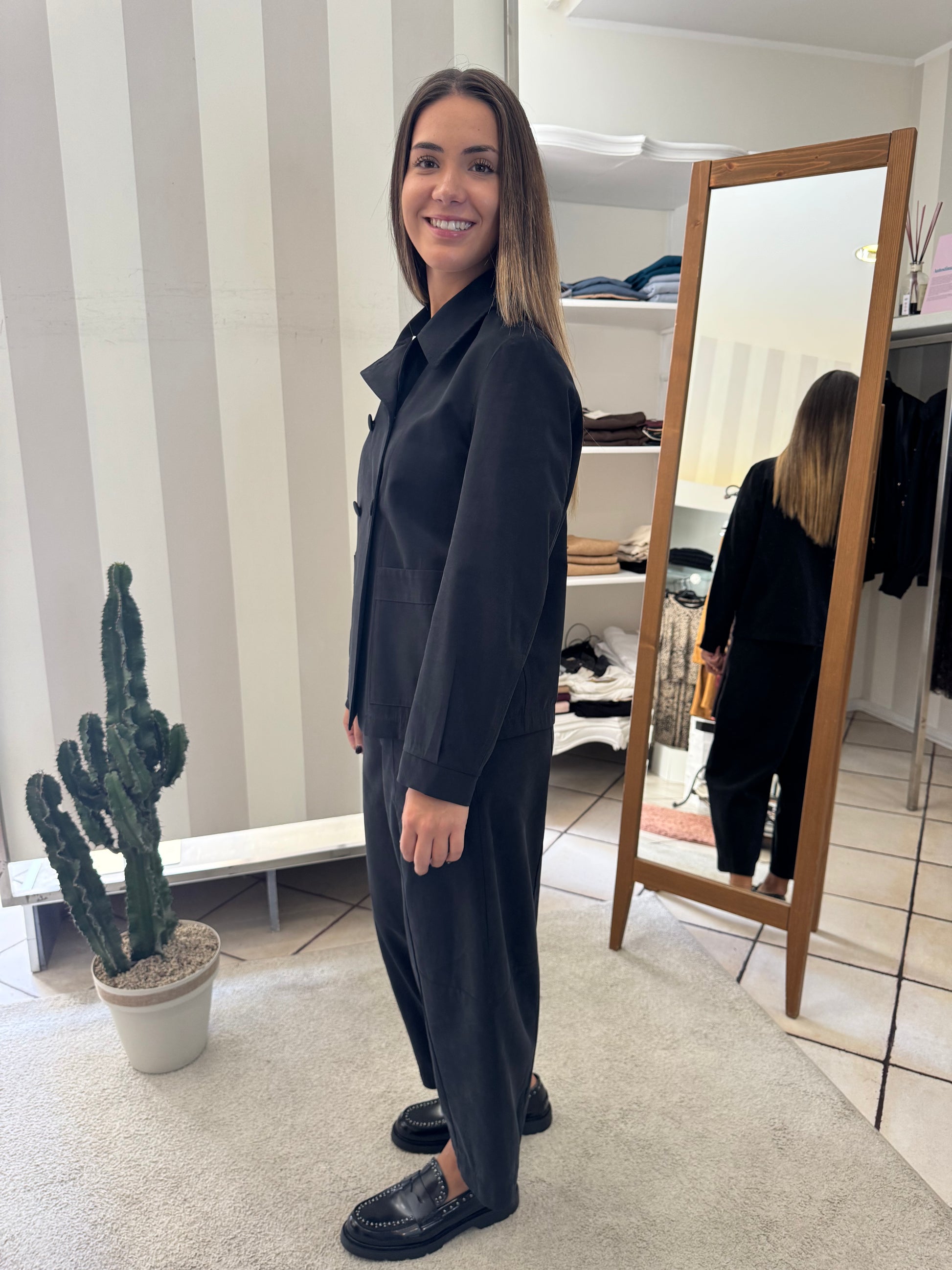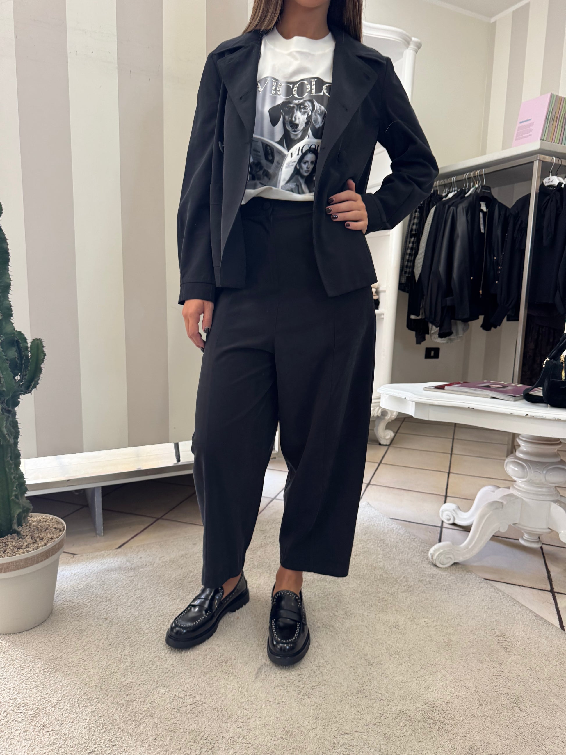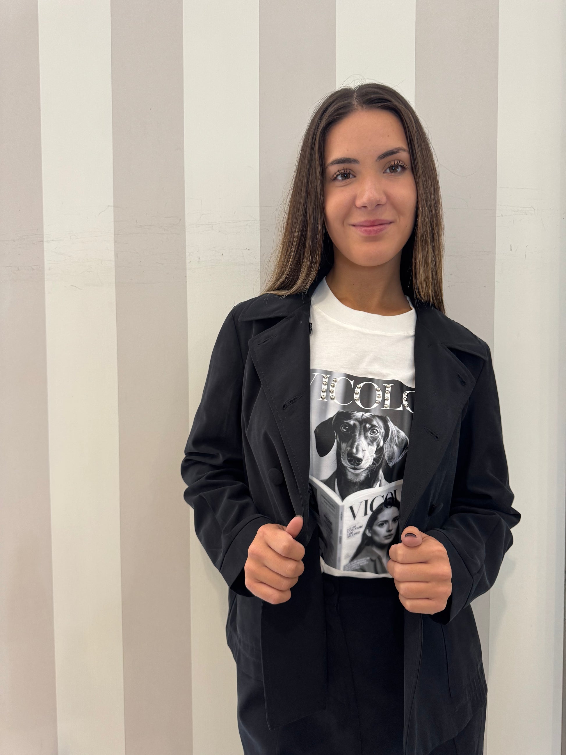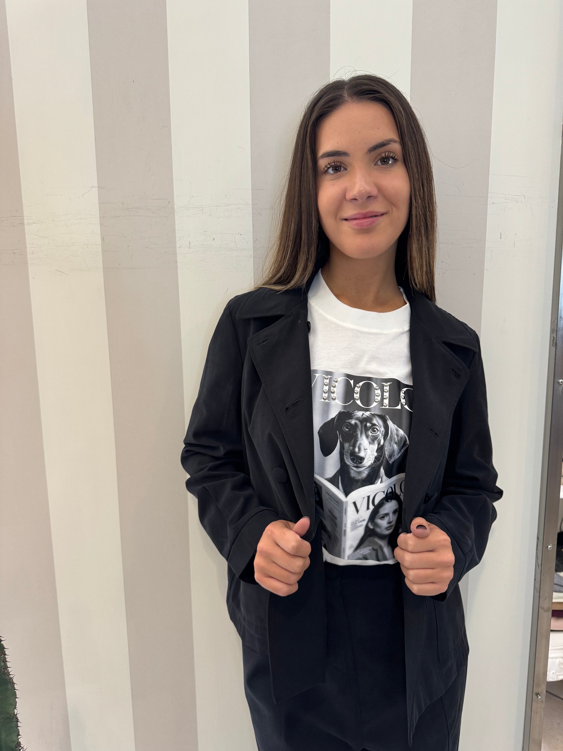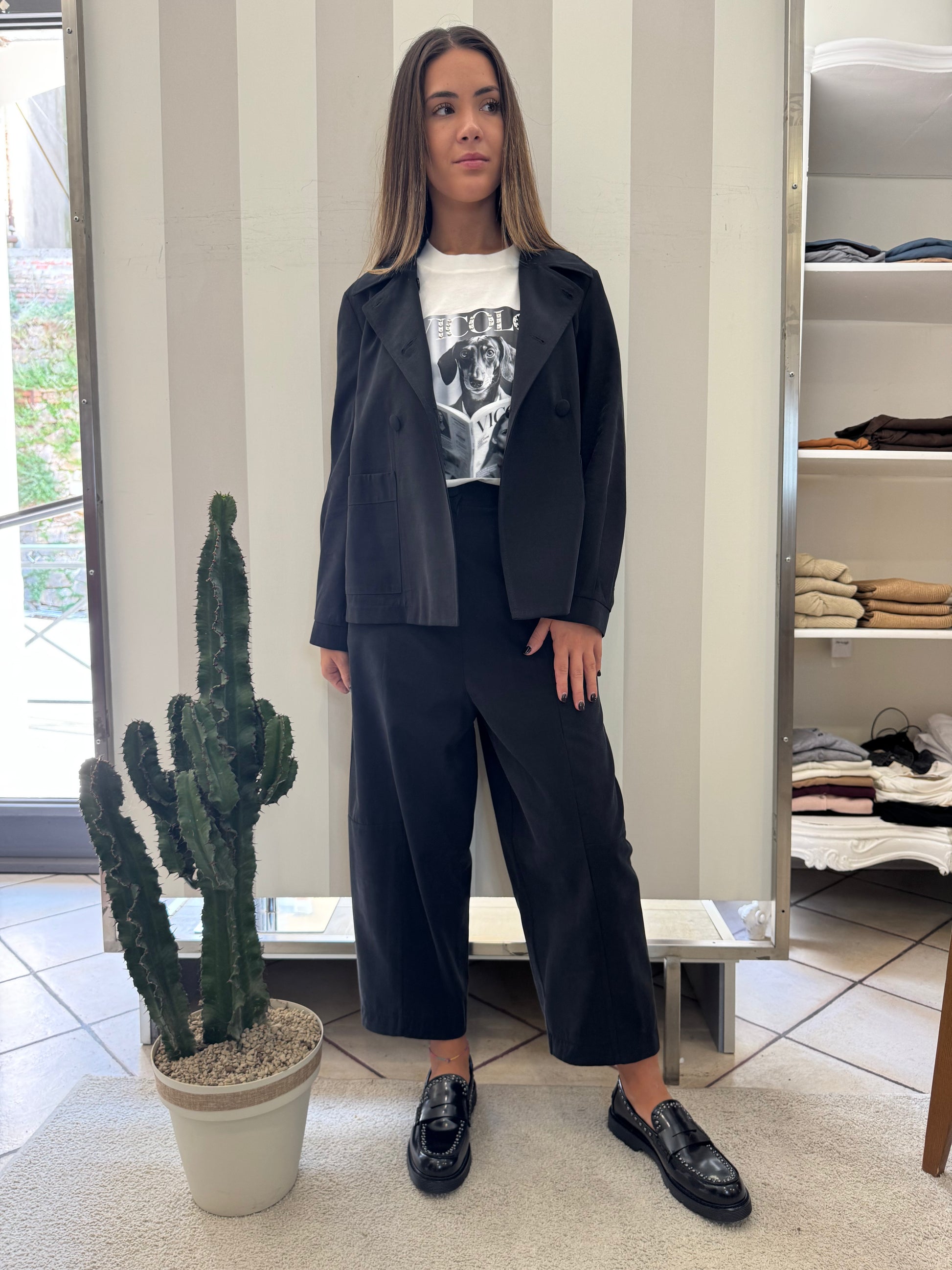 Descrizione: giacchina corta a doppiopetto, due taschini frontali. Taglio over.