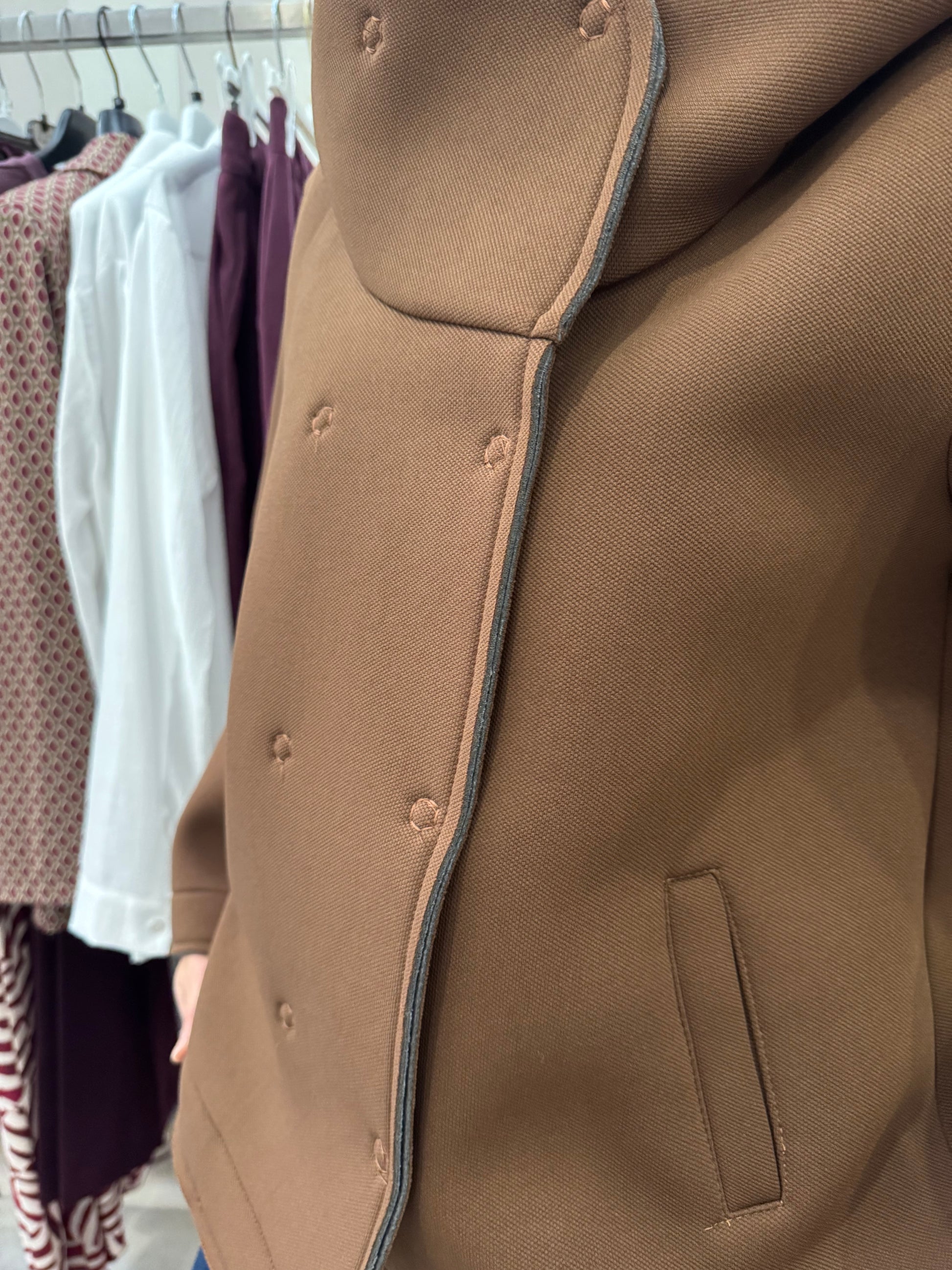 Descrizione: Giacca in neoprene con cappuccio,chiusura doppio petto,tasche laterali