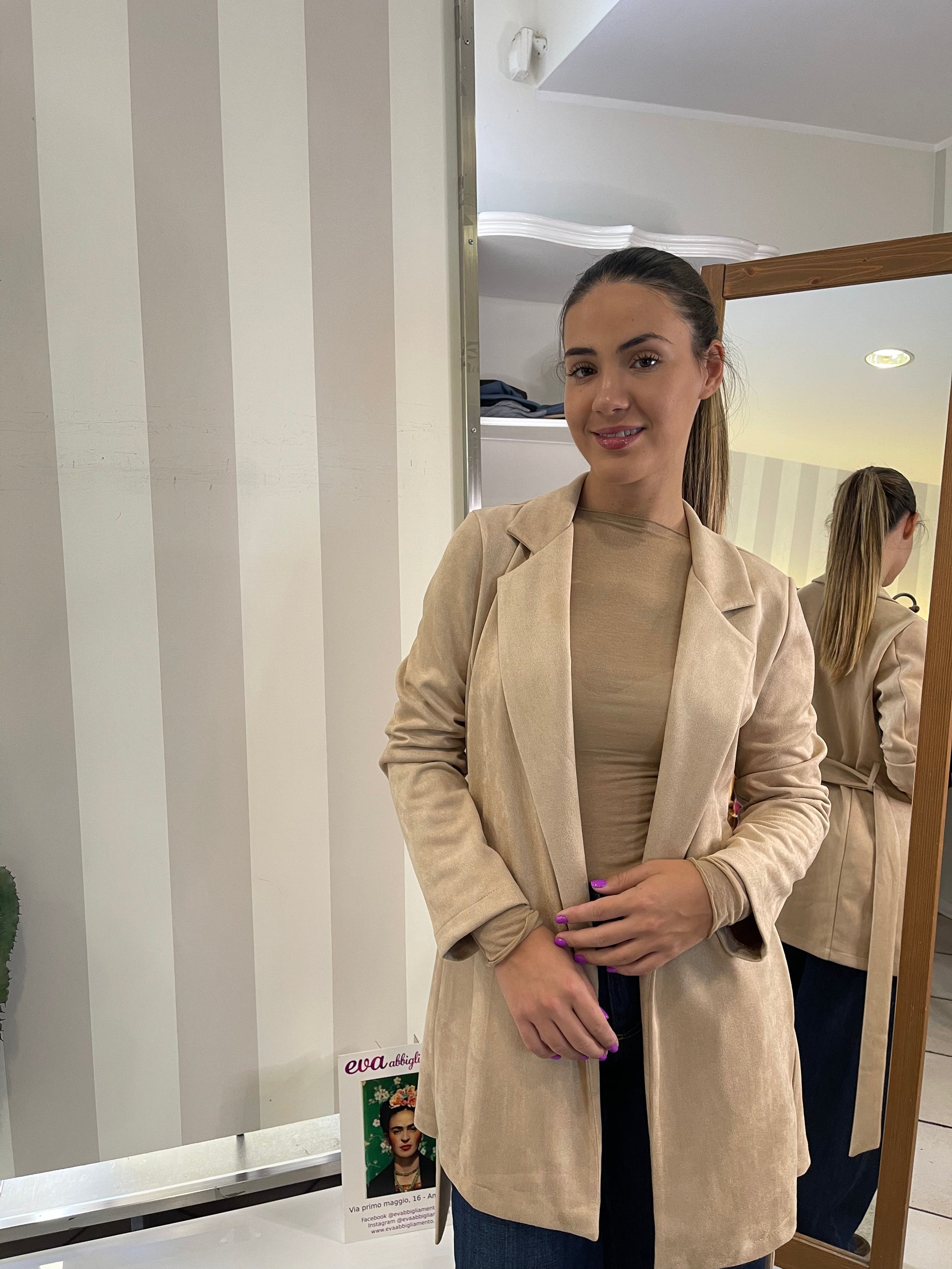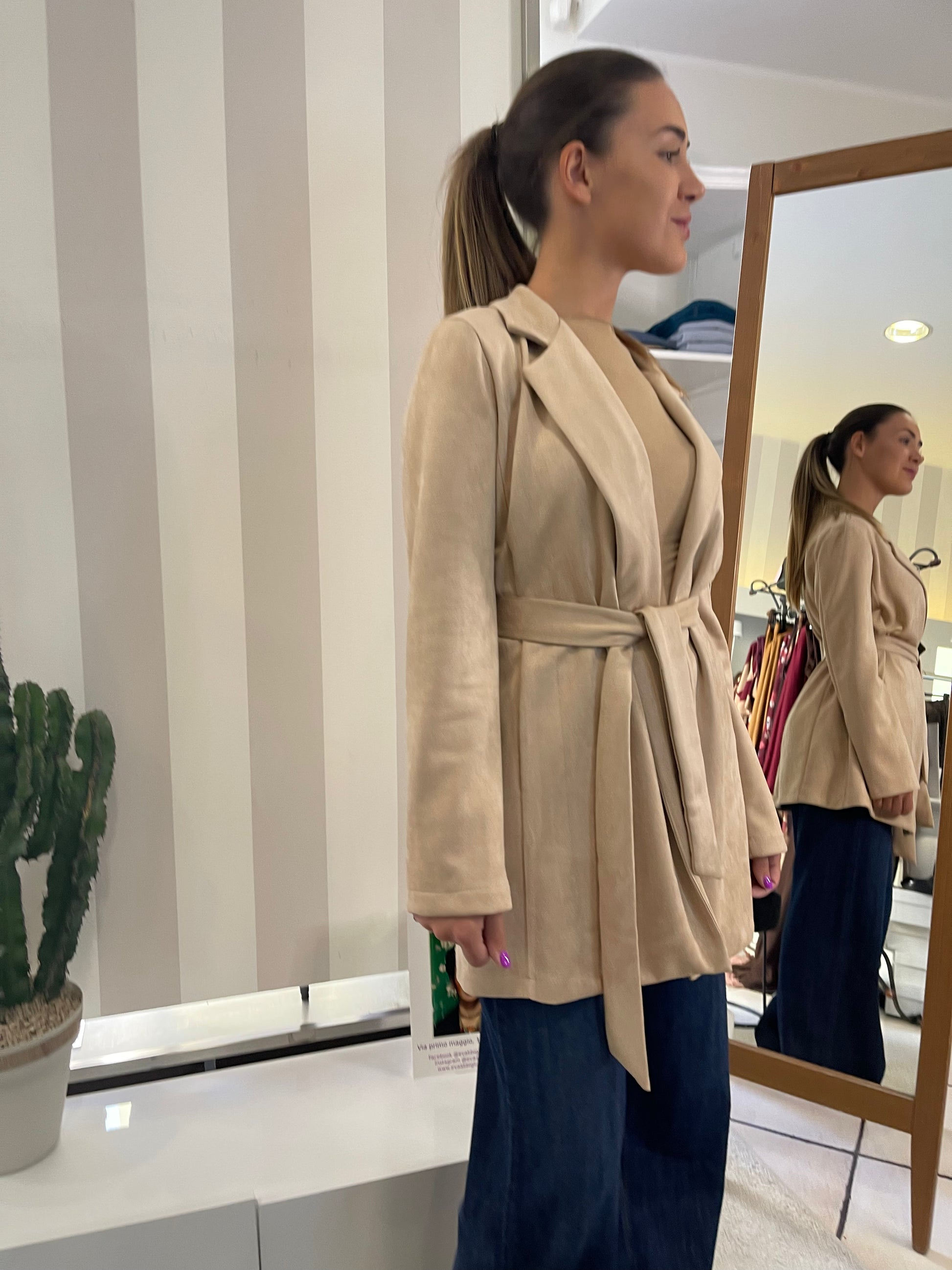 Descrizione: Giacca kimono Suede, chiusura con cintura in vita.