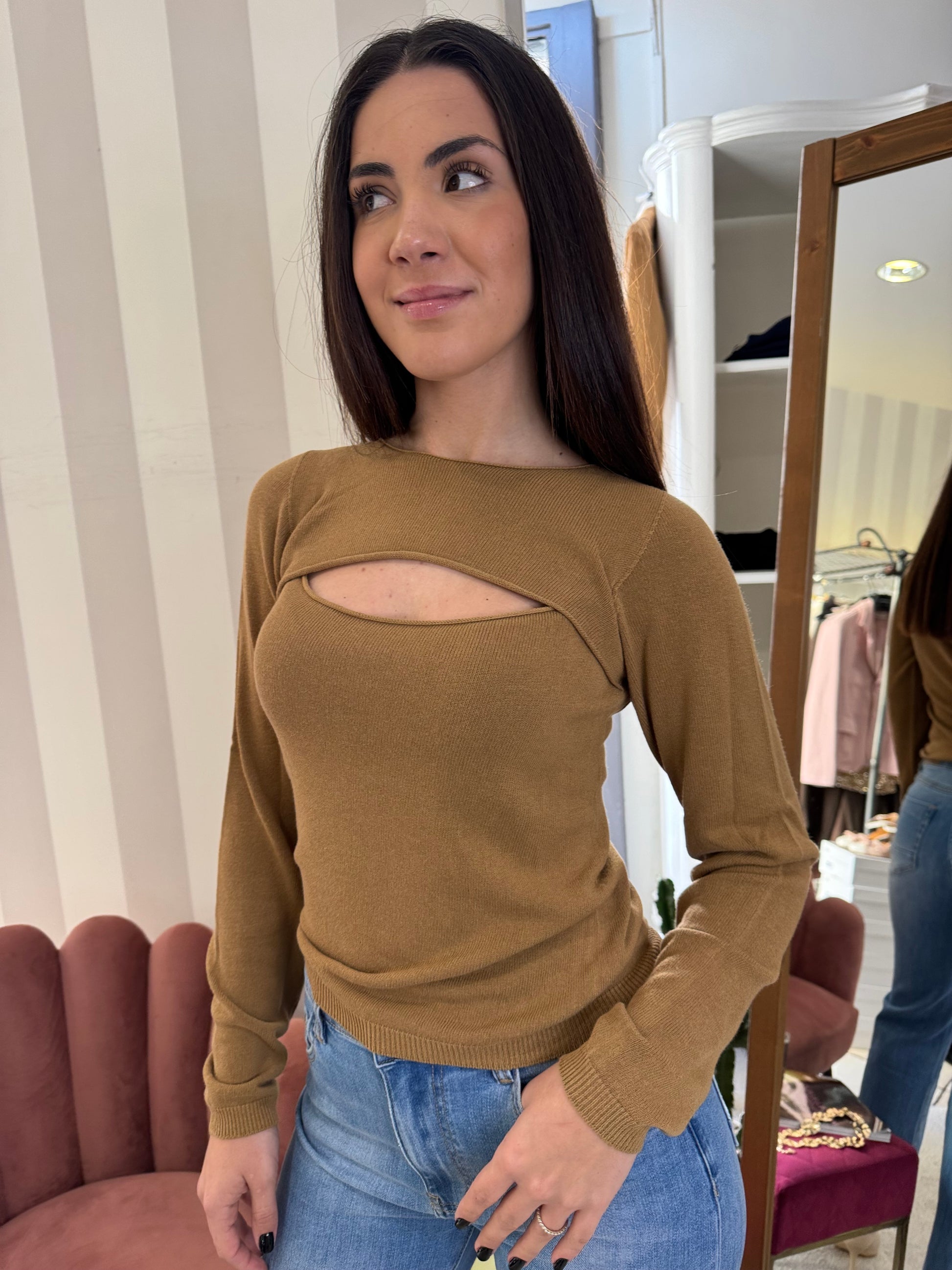 Descrizione: Maglia in filo a manica lunga,apertura cut-out sul davanti