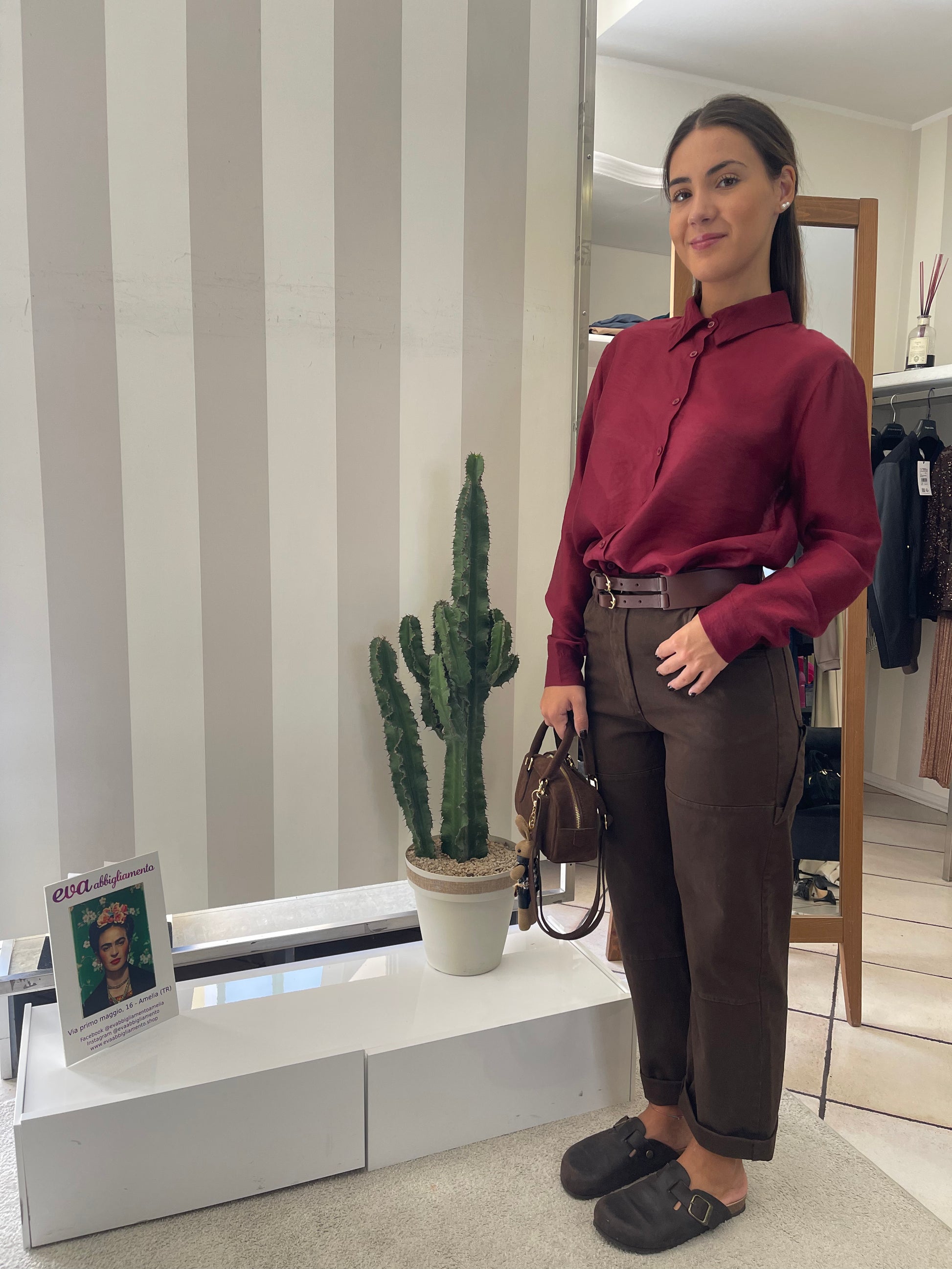Descrizione: pantalone cargo, tasche posteriori, chiusura con bottone.