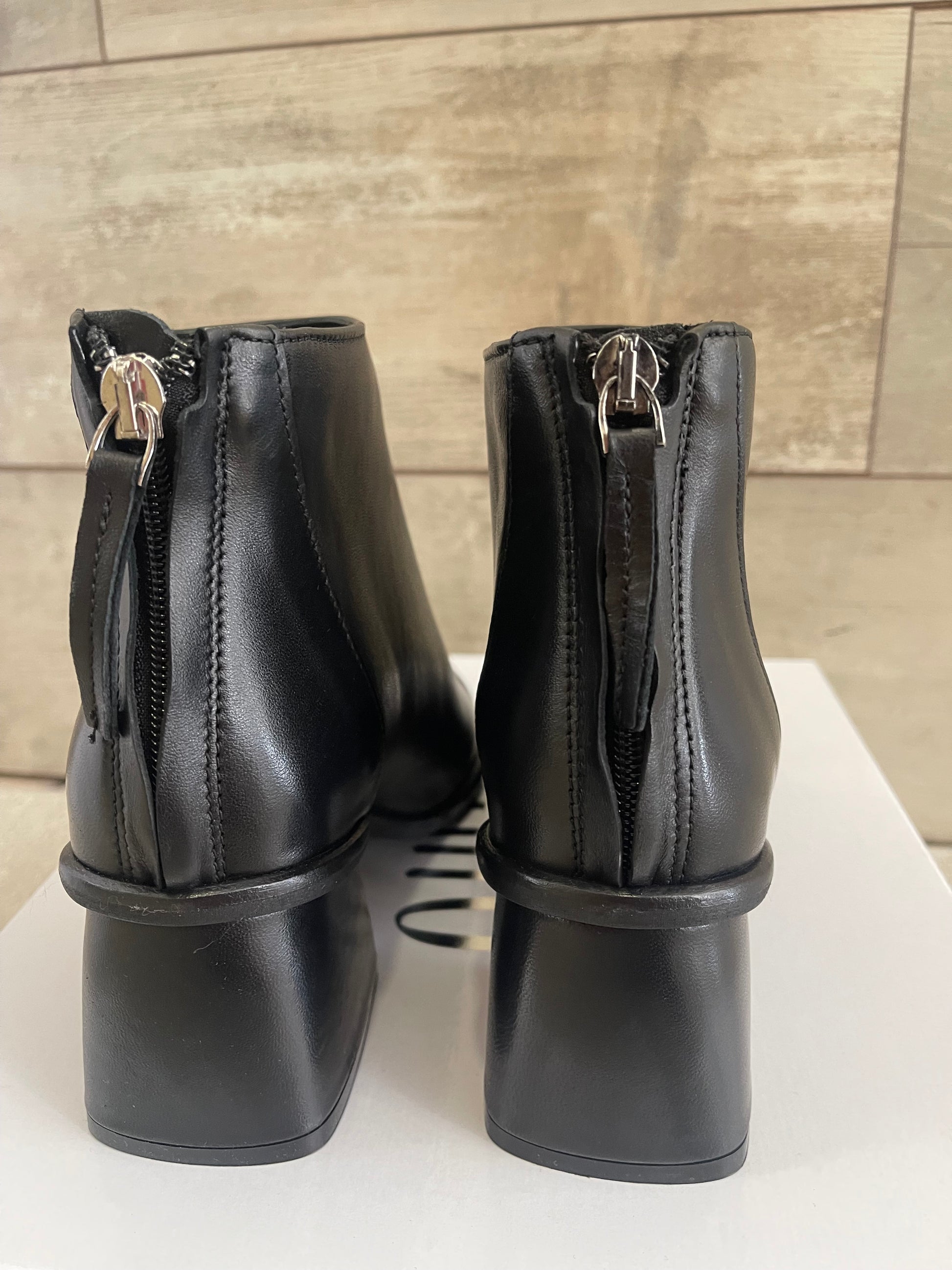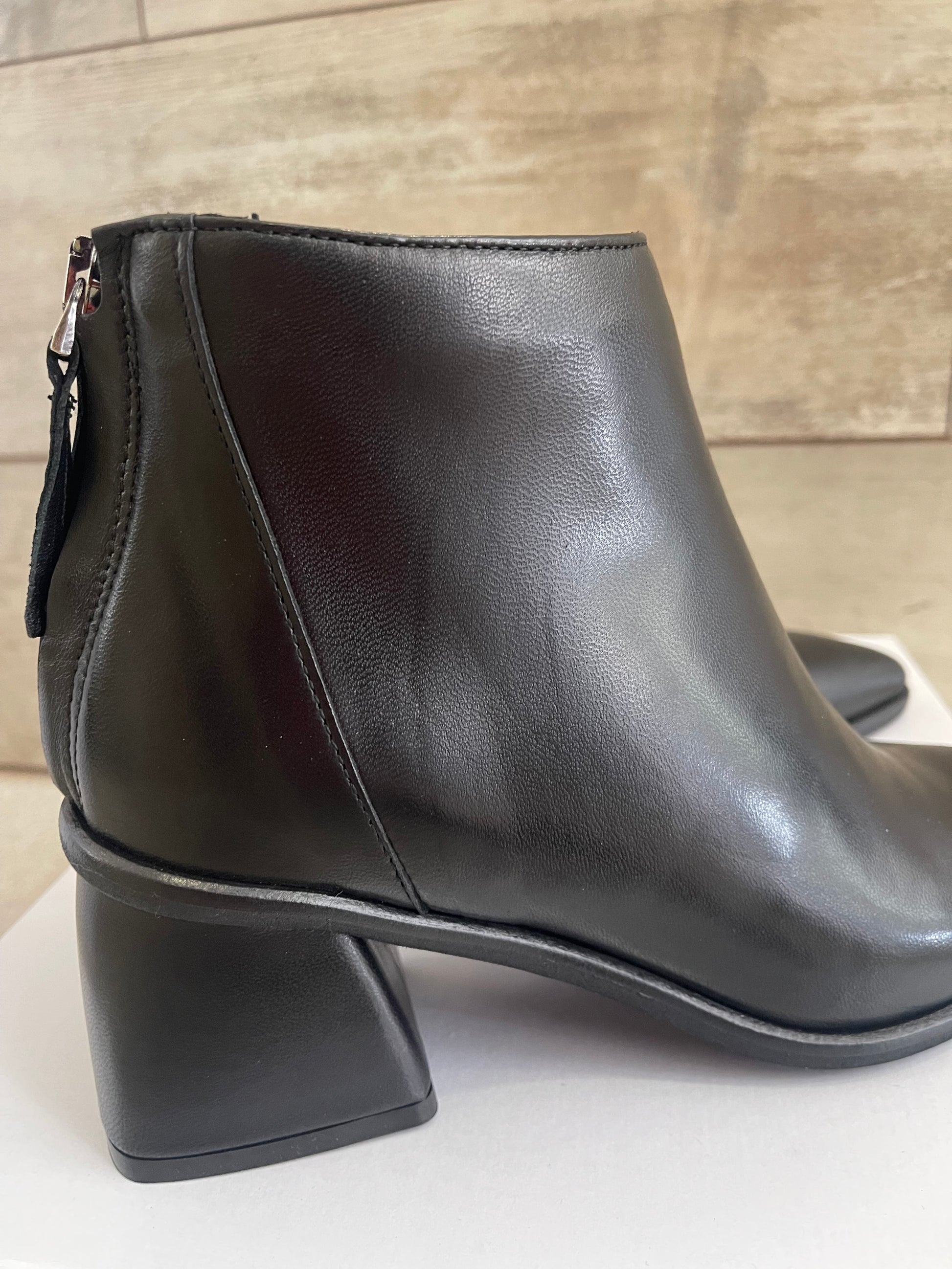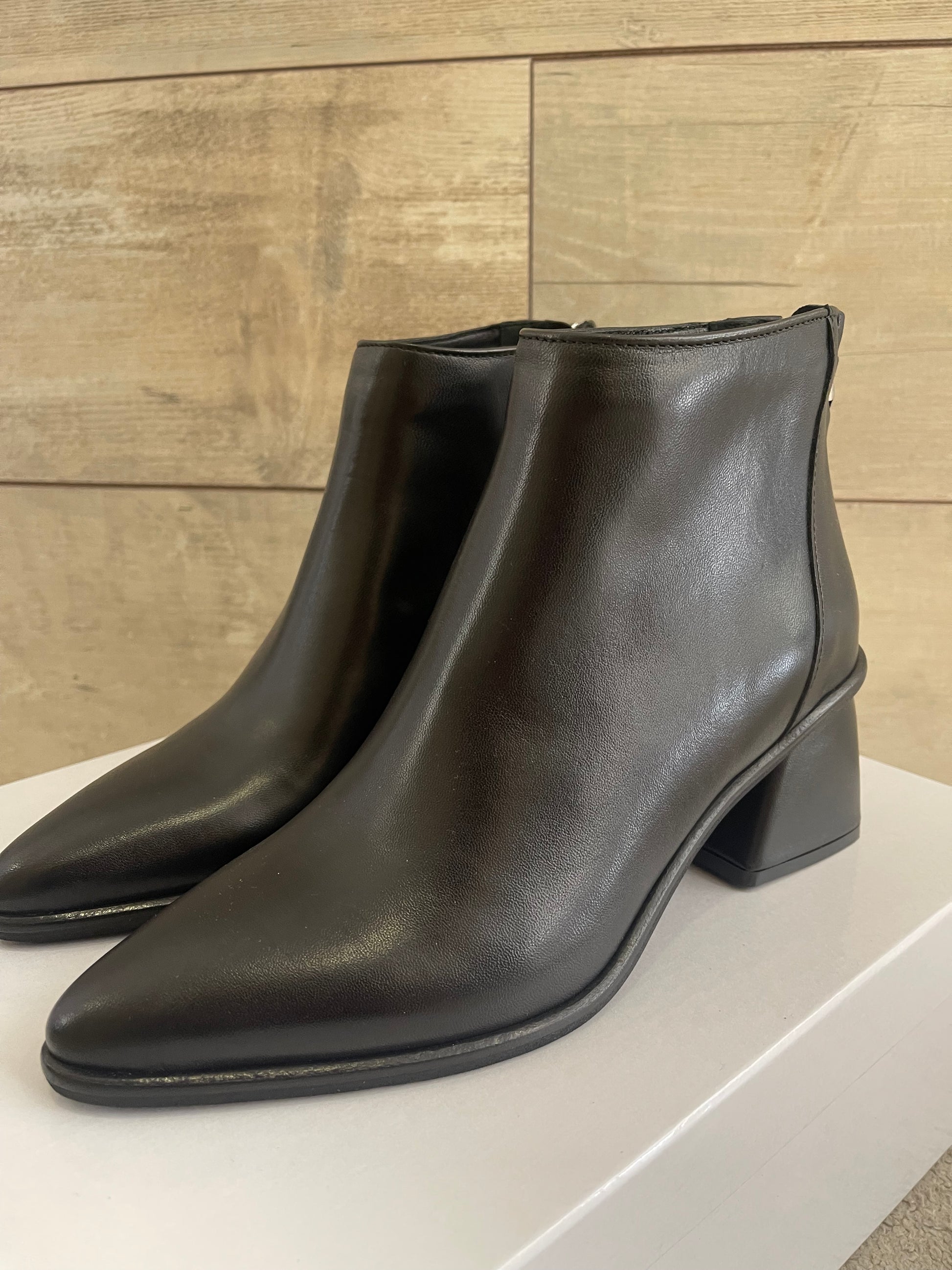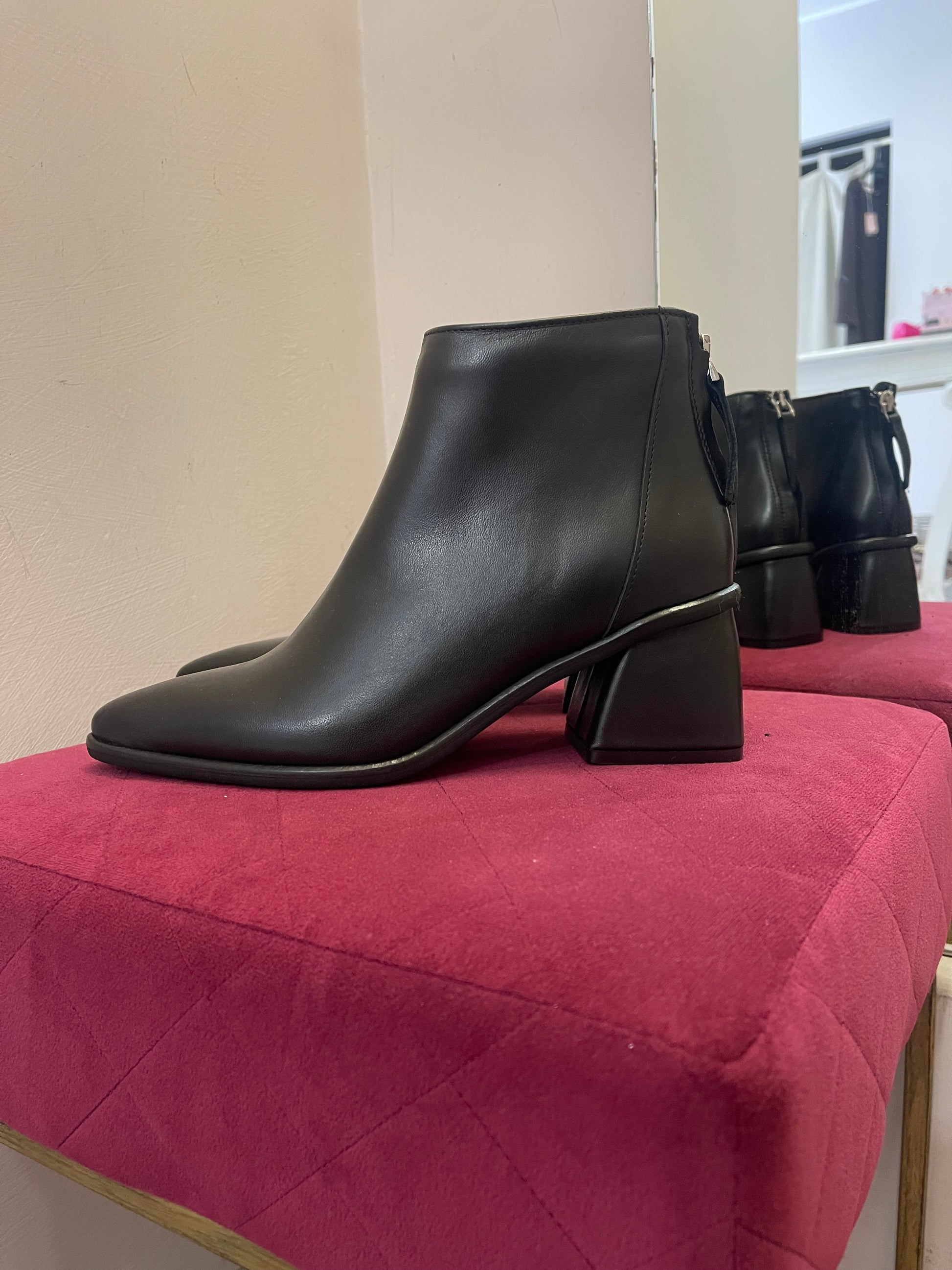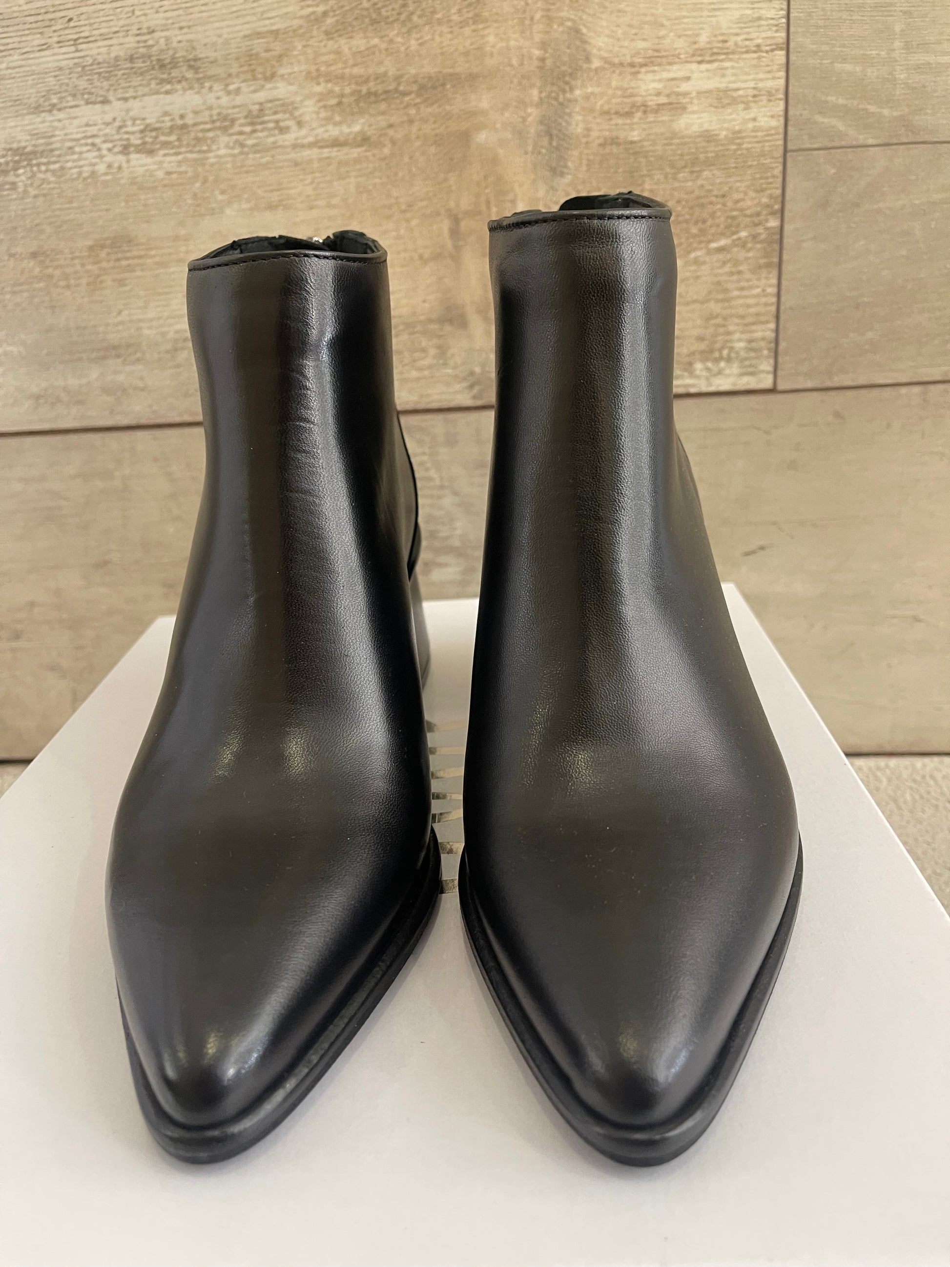 Stivaletto a punta ,altezza gambale alla caviglia,interamente in pelle,tacco 5 cm,zip posteriore. Made in Italy