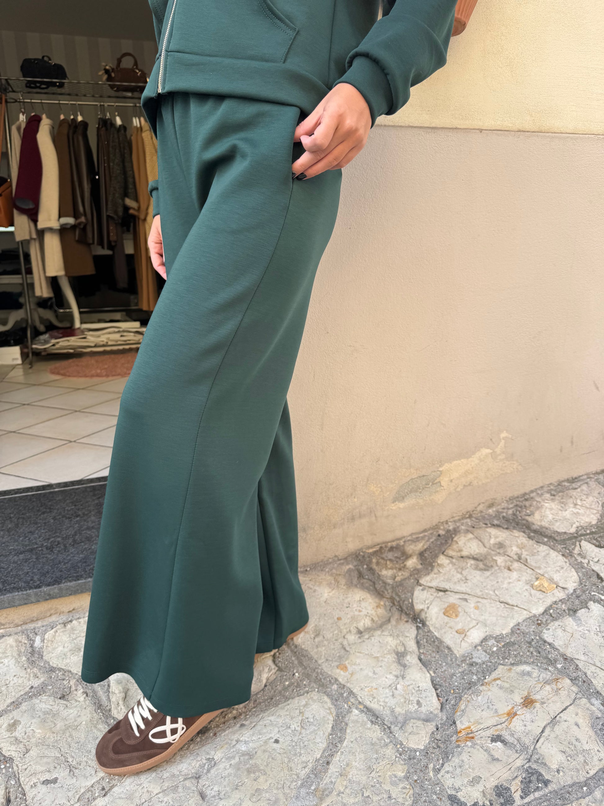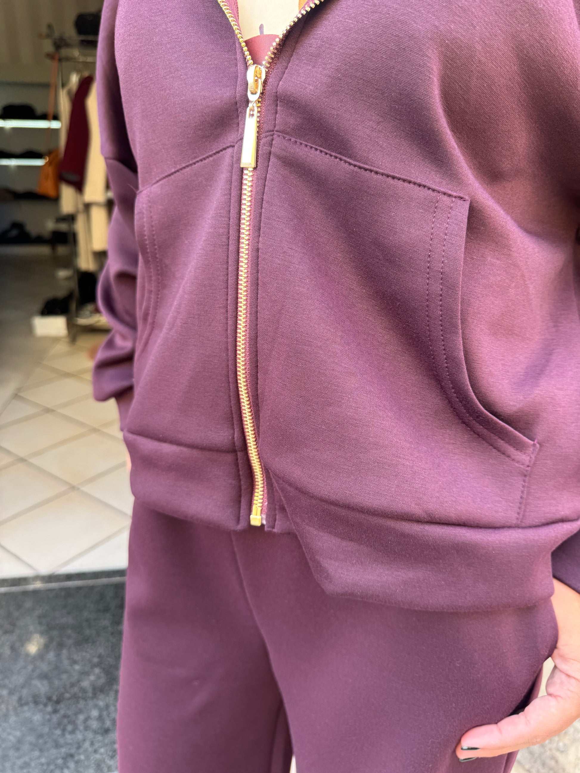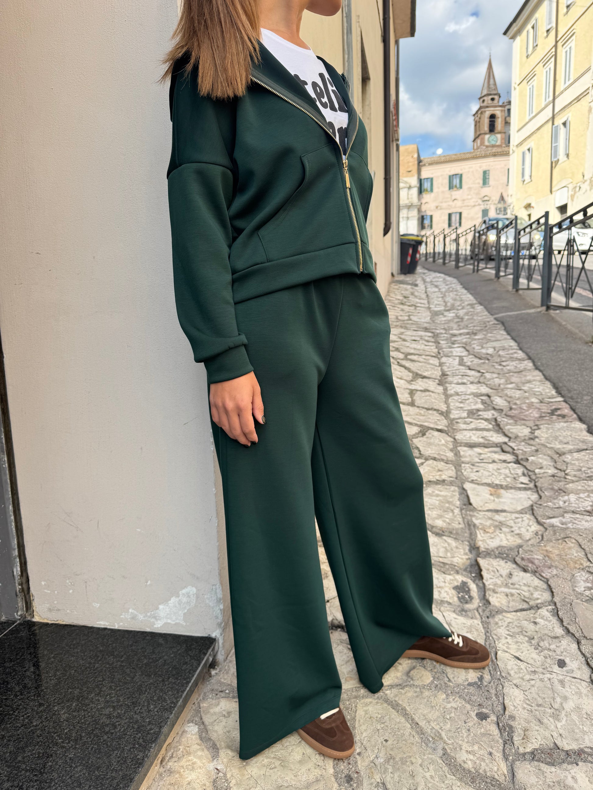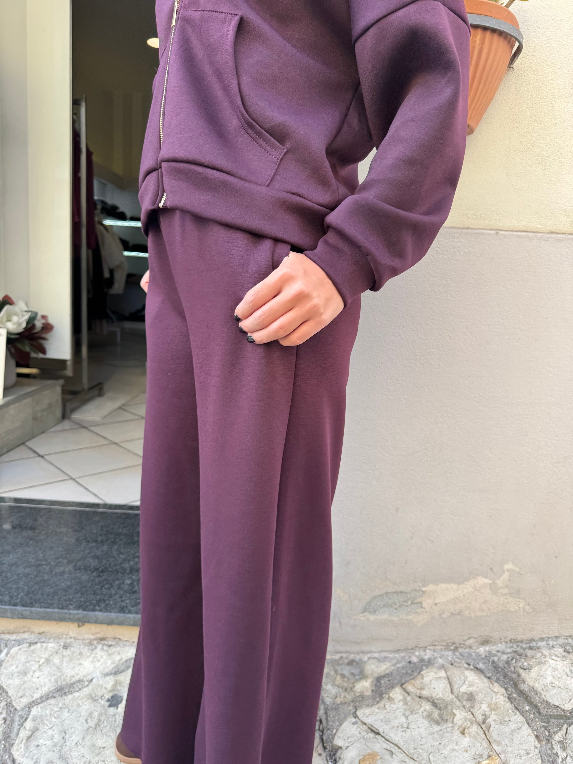 Descrizione: Completo in light neoprene, composto da felpa con zip e cappuccio e pantalone gamba ampia, elastico in vita e due tasche